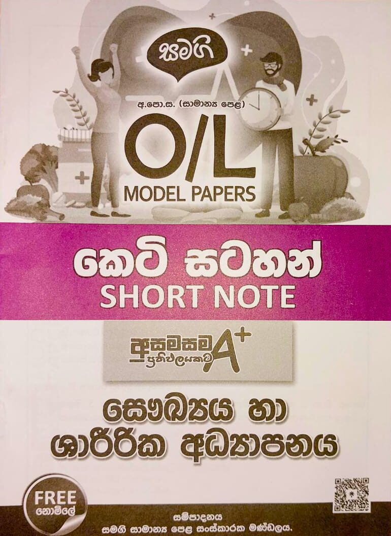 Buy 2025 O/L Health Model Paper Book published by Samagi Publishers in Sinhala medium. අසමසම A+ ප්රතිඵලයකට O/L සෞඛ්යය හා ශාරීරික අධ්යාපනය ආදර්ශ ප්රශ්නපත්ර පොත