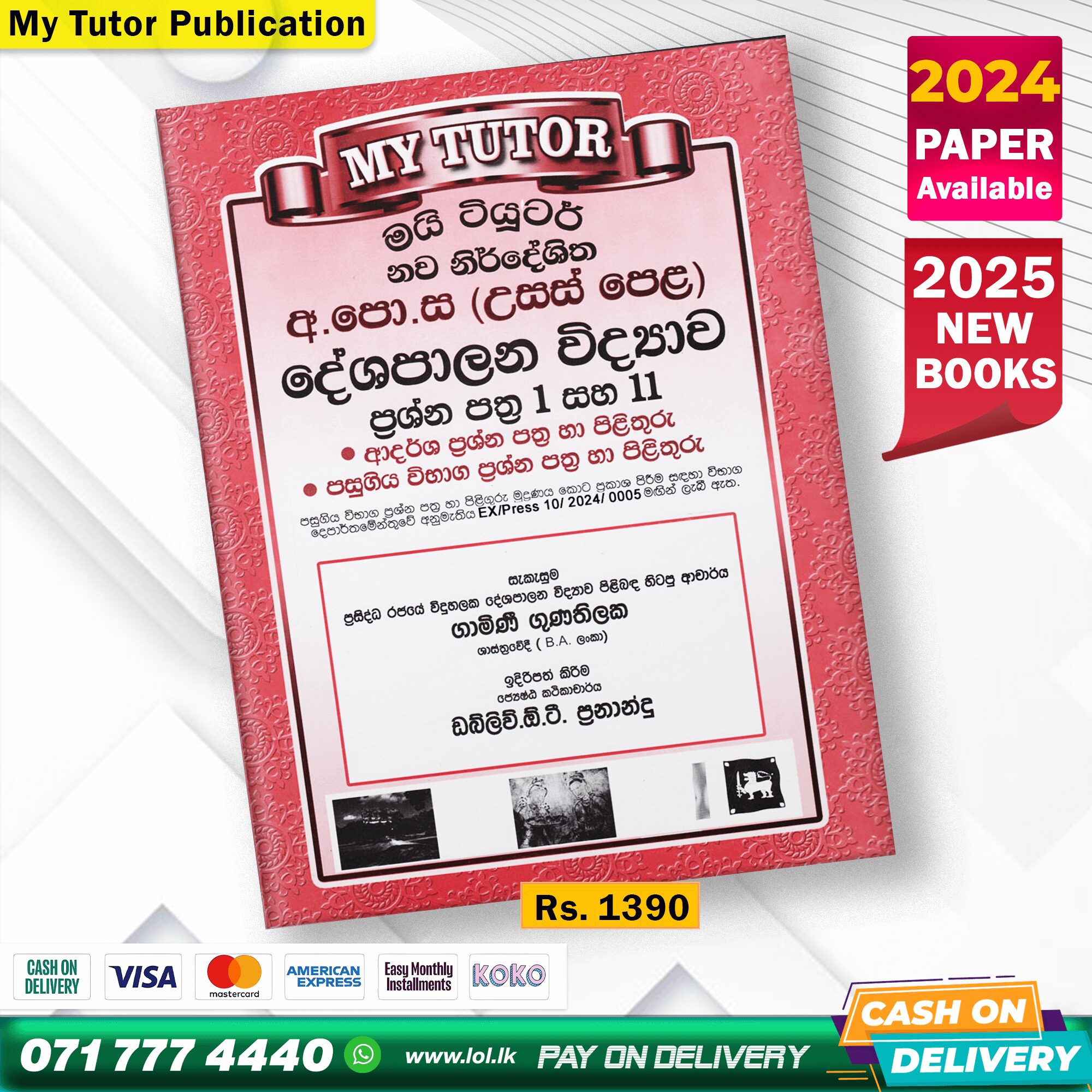 Elevate your A/L Political Science exam preparation with My Tutor A/L Political Science Past Paper Book (Sinhala Medium), available at LOLBOOKSTORE. This essential guide offers past papers from 2018 to 2024, 02 model papers, and 01 mock test paper, all aligned with the new syllabus. Printed on quality white paper.