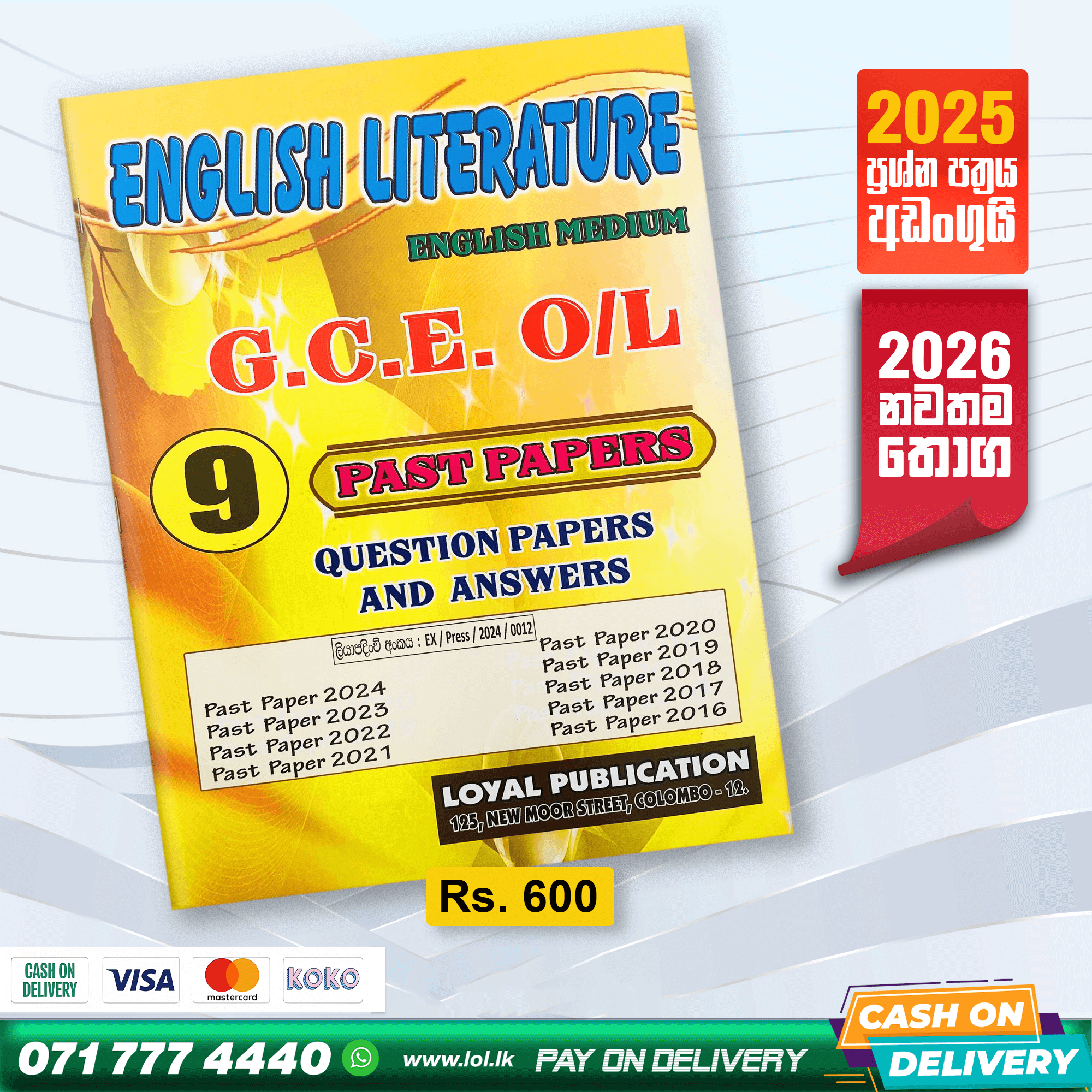 Q5: Where can I buy the Loyal Publication O/L English Literature Past Paper Book?