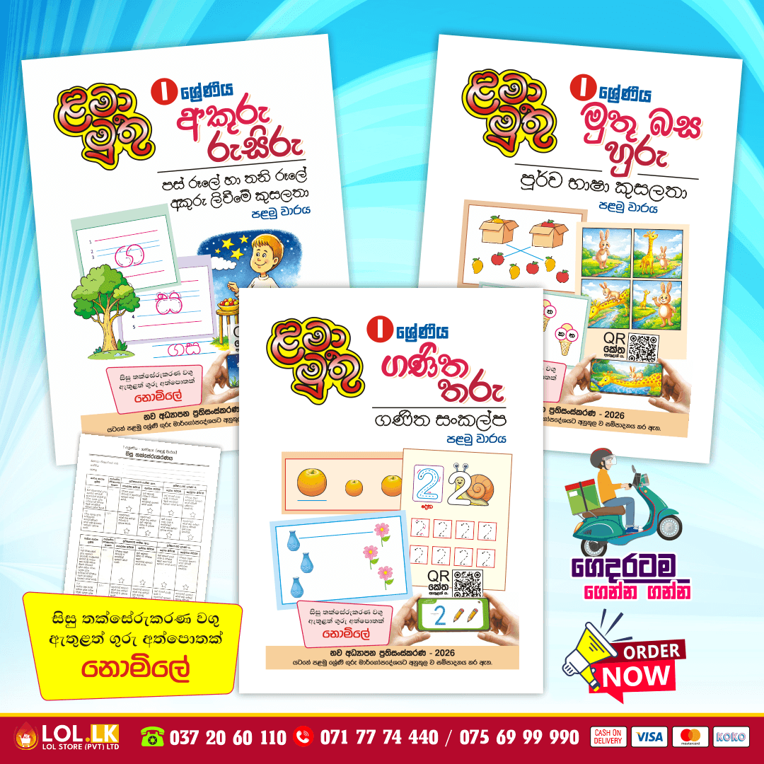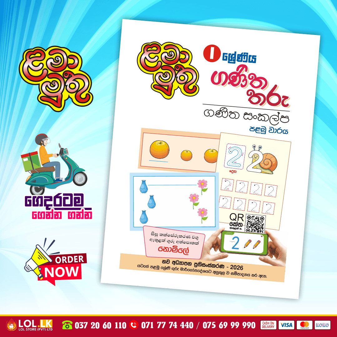 Buy Grade 01 Ganitha Tharu Workbook for Sinhala Medium students (Lama Muthu Publication). 1 ශ්රේණිය 2026 නව අධ්යාපන ප්රතිසංස්කරණ යටතේ පළමු ශ්රේණියේ ගුරු මාර්ගෝපදේශයට අනුකූලව සම්පාදනය කළ ප්රතිපෝෂණ මොඩියුල පෙළෙහි ගණිත තරු වැඩපොත ගණිත සංකල්ප ඇතුලත් කර සකස් කර ඇත. මේ සමග සිසු තක්සේරුකරණ වගු ඇතුළත් ගුරු අත්පොතක් නොමිලේ.