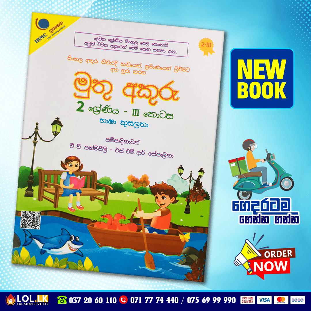 Buy Grade 02 Muthu Akuru – Basha Kusalatha workbook for Sinhala Medium students (Muthu Akuru Publication). මුතු අකුරු – භාෂා කුසලතා පොත සිංහල අකුරු නිවැරදි හැඩයෙන්, ප්රමාණයෙන් ලිවීමට අත හුරු කරන දෙවන ශ්රේණියේ ගුරු මාර්ගෝපදේශයට අනුව ඉගැන්වීමට නියමිත අක්ෂර 24 ක් අන්තර්ගතයි.