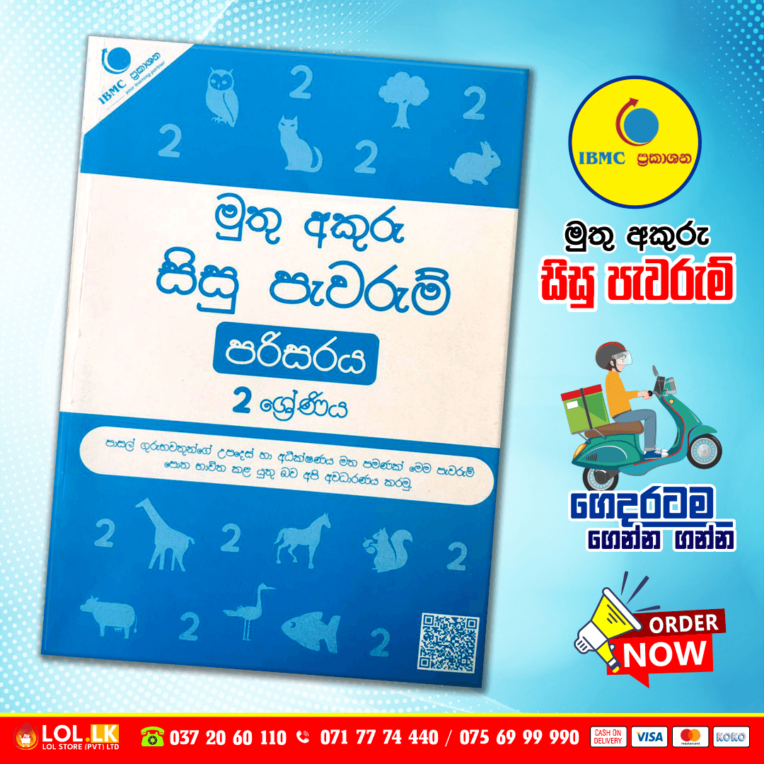 Buy Grade 02 Muthu Akuru – Environment – Student Assignments for Sinhala Medium students (IBMC Publication)මුතු අකුරු – සිසු පැවරුම් – පරිසරය පොත පාසල් ගුරුභවතුන්ගේ උපදෙස් හා අධීක්ෂණය මත පමණක් මෙම පැවරුම් පොත භාවිත කළ යුතු බව අපි අවධාරණය කරමු.