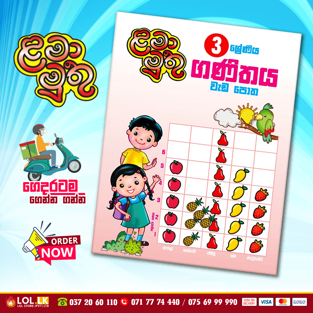 Buy Grade 03 Lama Muthu Maths Workbook for Sinhala Medium students (Lama Muthu Publication). 3 ශ්රේණියේ ඉගෙනුම ලබන ඔබේ දරුවා වෙනුවෙන් 2017 වසරේ පටන් ක්රියාත්මක කෙරෙන සංශෝධිත විෂයය නිර්දේශයානුකූල ව සැකසුණු 3 ශ්රේණි ළමා මුතු ගණිතය වැඩ පොත.