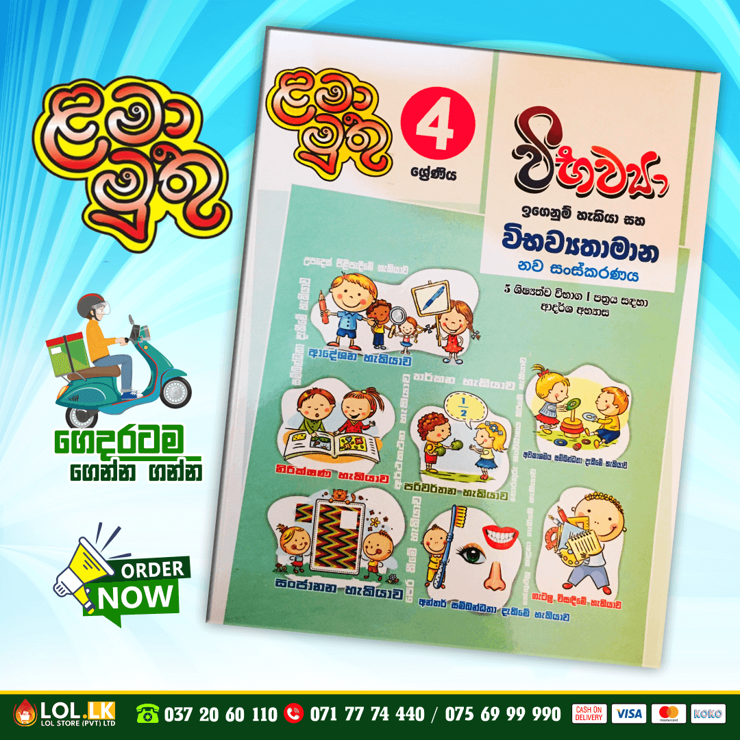 Buy Grade 04 Lama Muthu Wibawya Paper book for Sinhala Medium students (Lama Muthu Publication) Prepared for the Grade 5 Scholarship Examination. ළමා මුතු වෙතින් පල කෙරෙන 4 ශ්රේණි විභව්යා ප්රශ්නෝත්තර වැඩ පොත 4 ශ්රේණි සදහා යොජිත ඉගෙනුම් හැකියා සහ විභව්යතාමාන යටතේ සැකසුණු අභ්යාස වලින් සමන්විතයි.