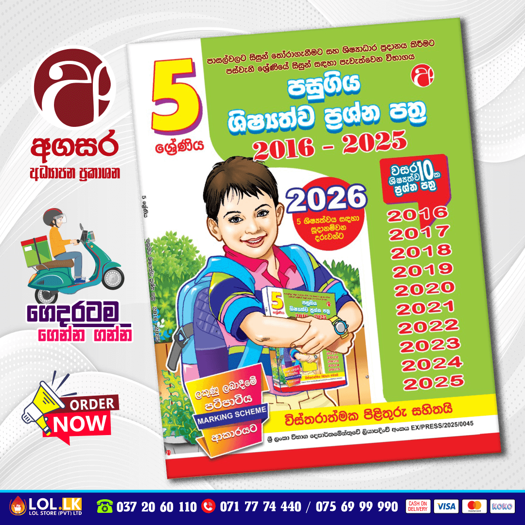 Tags: 05 ශ්රේණිය පසුගිය ශිෂ්යත්ව ප්රශ්න පත්ර, Agasara Publication, Grade 05 Past Paper Book, අගසර අධ්යාපන ප්රකාශන