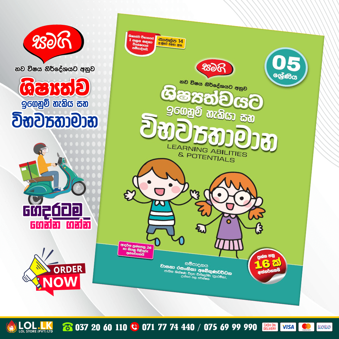 Buy Grade 05 Samagi – Shishshathwa Denum Sayura Workbook for Sinhala Medium students (Samagi Publication). 05 ශ්රේණිය සමගි පොත් ප්රකාශන නව විෂය නිර්දේශයට අනුව ශිෂ්යත්වයට ඉගෙනුම් හැකියා සහ විභව්යතාමාන. ප්රශ්න පත්ර 16 ක සහ ආදර්ශ ප්රශ්න පත්ර දෙකක් සහ සියලුම පිළිතුරු අන්තර්ගතයි.