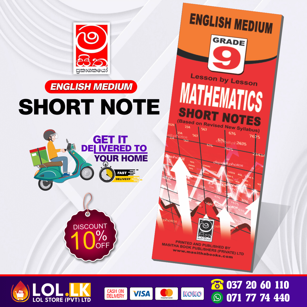 Buy Grade 09 Mathematics Short Notes Book in English medium. This book is prepared according to the new Grade 09 syllabus and is ideal for quick revision and easy understanding. Fast delivery available.
