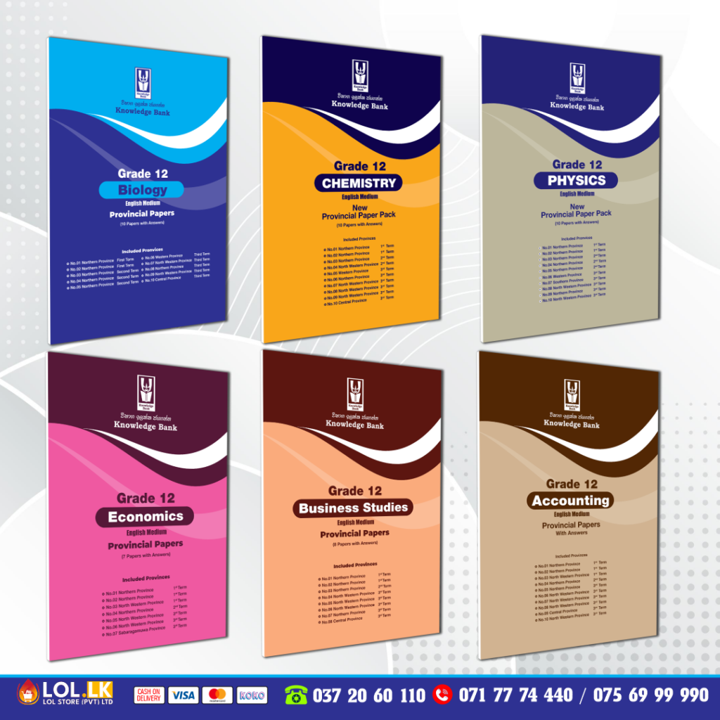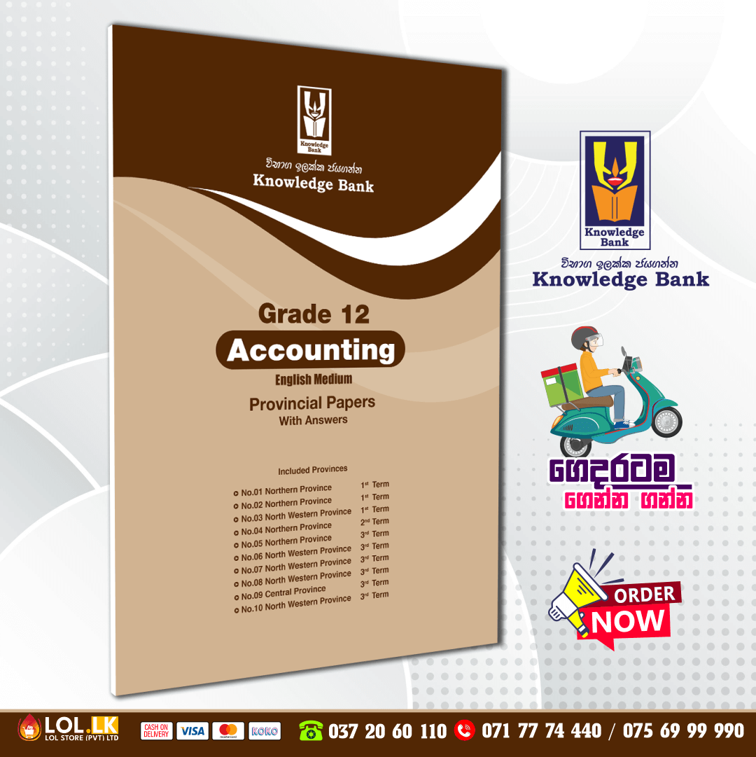 Buy Grade 12 Accounting Provincial Papers Book with term test papers including answers by Knowledge Bank publishers. 12 ශ්‍රේණිය ගිණුම්කරණය පළාත් පේපර් පොත. ප්‍රශ්න සහ පිළිතුරු පත්‍ර ඇතුළත්.