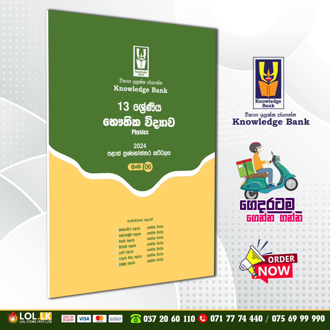 Buy Knowledge Bank Grade 13 Physics Provincial Papers Book with term test papers including answers. 13 ශ්‍රේණිය භෞතික විද්‍යාව පළාත් පේපර් පොත. ප්‍රශ්න සහ පිළිතුරු පත්‍ර ඇතුළත් ය.