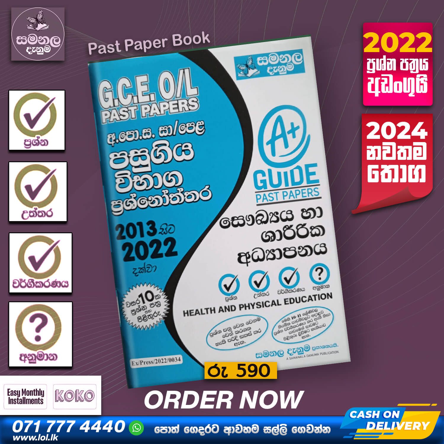 Buy Samanala Danuma O/L Health And Physical Education Past Paper Book online. It Includes Question papers and Answer sheets for the last 10 years’ exams from 2012 to 2021.