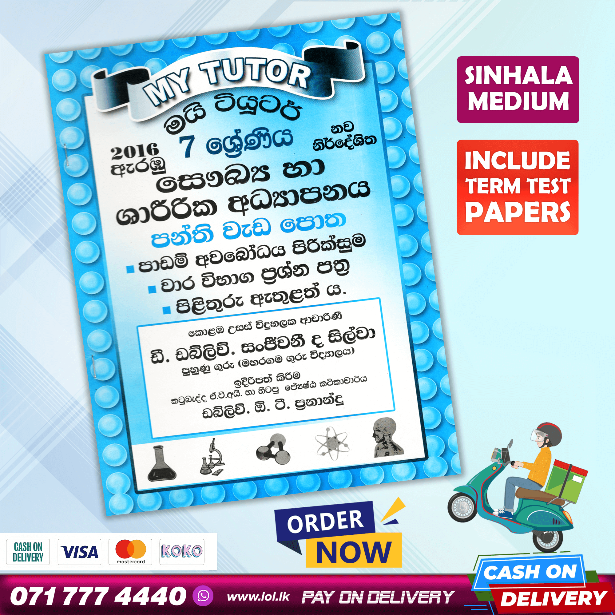 Buy My Tutor Grade 07 Health revision exercises class workbook with term test papers including answers. 07 ශ්රේණිය සෞඛ්යය පන්ති වැඩ පොත. පාඩම් අවබෝධ පිරික්සුම, වාර විභාග ප්රශ්න පත්ර, පිළිතුරු පත්ර ඇතුළත් ය.