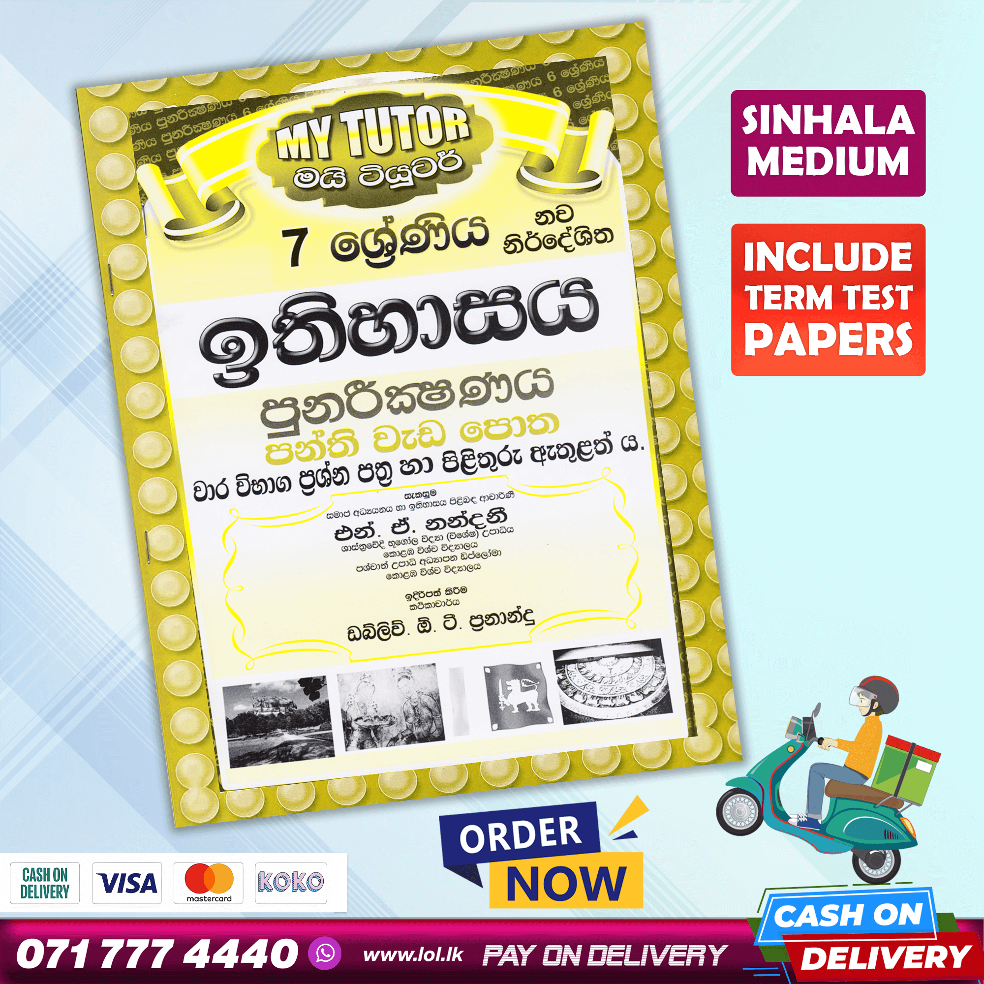 Buy My Tutor Grade 07 History Revision exercises class workbook with term test papers including answers. 07 ශ්රේණිය ඉතිහාසය පුනරීක්ෂණ පන්ති වැඩ පොත. පාඩම් අවබෝධ පිරික්සුම, වාර විභාග ප්රශ්න පත්ර, පිළිතුරු පත්ර ඇතුළත් ය.
