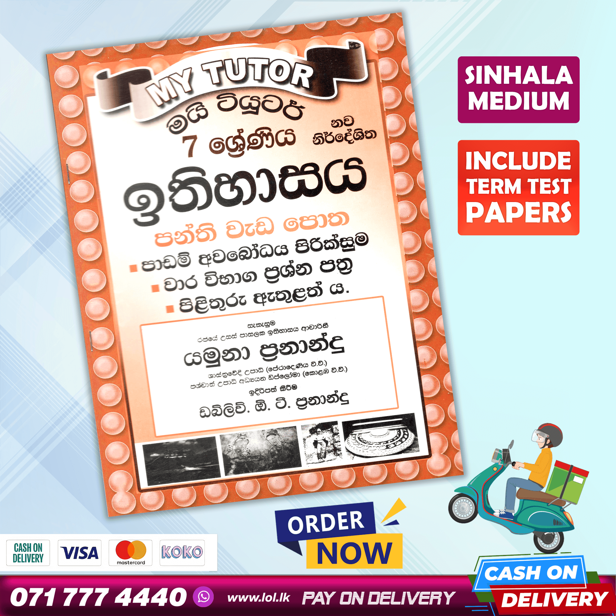Buy My Tutor Grade 07 History revision exercises class workbook with term test papers including answers. 07 ශ්රේණිය ඉතිහාසය පන්ති වැඩ පොත. පාඩම් අවබෝධ පිරික්සුම, වාර විභාග ප්රශ්න පත්ර, පිළිතුරු පත්ර ඇතුළත් ය.