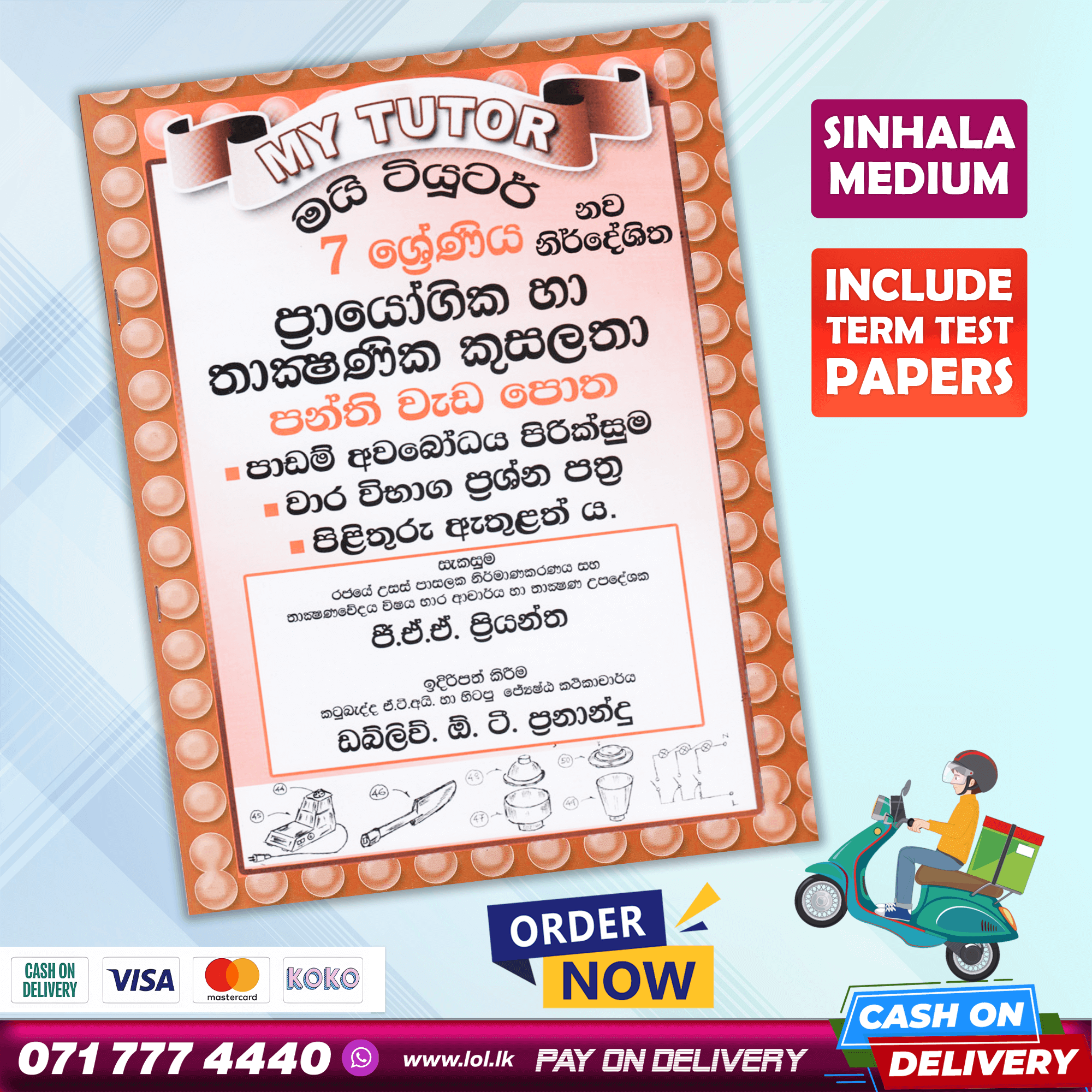 Buy My Tutor Grade 07 PTS revision exercises class workbook with term test papers including answers. 07 ශ්රේණිය ප්රායෝගික හා තාක්ෂණික කුසලතා පන්ති වැඩ පොත. පාඩම් අවබෝධ පිරික්සුම, වාර විභාග ප්රශ්න පත්ර, පිළිතුරු පත්ර ඇතුළත් ය.