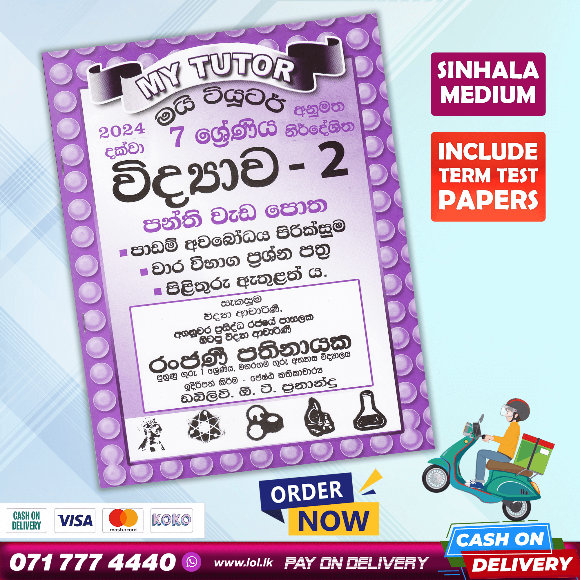 Buy My Tutor Grade 07 Science Workbook 02 with term test papers including answers. 07 ශ්රේණිය විද්යාව පන්ති වැඩ පොත. පාඩම් අවබෝධ පිරික්සුම, වාර විභාග ප්රශ්න පත්ර, පිළිතුරු පත්ර ඇතුළත් ය.