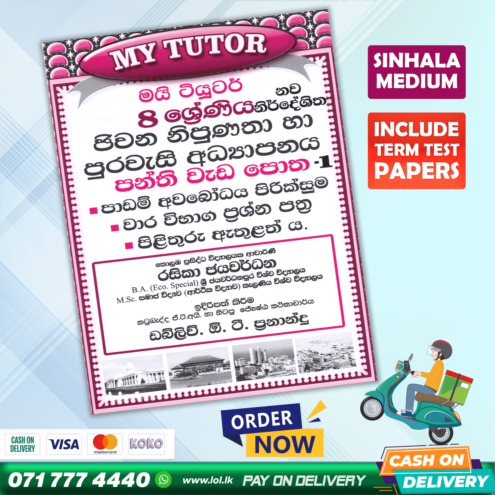 Buy My Tutor Grade 08 Civic Education revision exercises class workbook with term test papers including answers. 08 ශ්රේණිය පුරවැසි අධ්යාපනය පන්ති වැඩ පොත. පාඩම් අවබෝධ පිරික්සුම, වාර විභාග ප්රශ්න පත්ර, පිළිතුරු පත්ර ඇතුළත් ය.