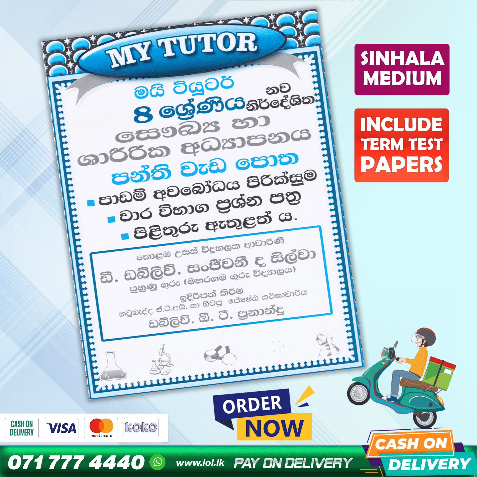 Buy My Tutor Grade 08 Health revision exercises class workbook with term test papers including answers. 08 ශ්රේණිය සෞඛ්ය හා ශාරීරික අධ්යාපනය පන්ති වැඩ පොත. පාඩම් අවබෝධ පිරික්සුම, වාර විභාග ප්රශ්න පත්ර, පිළිතුරු පත්ර ඇතුළත් ය.