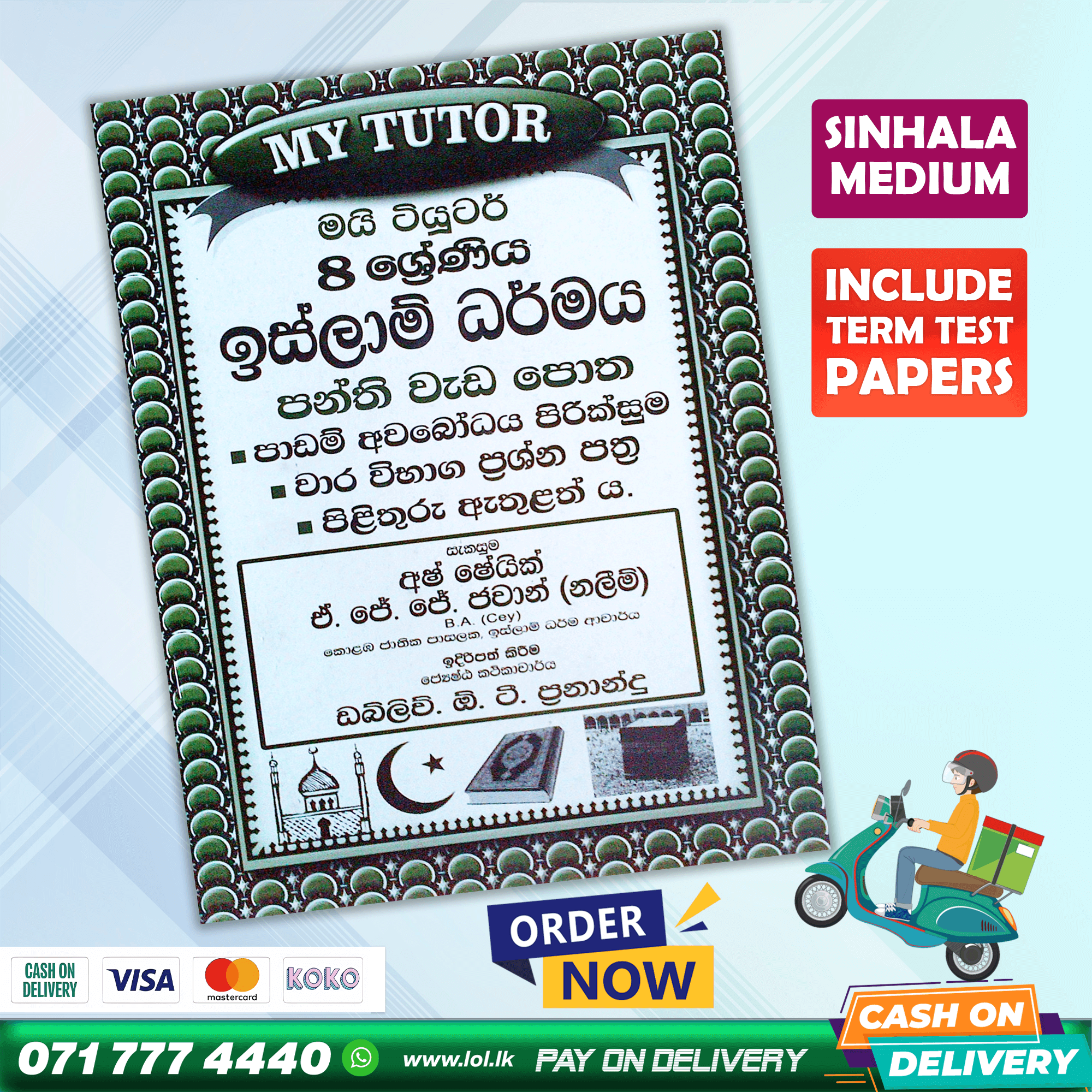 Buy My Tutor Grade 08 Islam revision exercises class workbook with term test papers including answers. 08 ශ්රේණිය ඉස්ලාම් ධර්මය පන්ති වැඩ පොත. පාඩම් අවබෝධ පිරික්සුම, වාර විභාග ප්රශ්න පත්ර, පිළිතුරු පත්ර ඇතුළත් ය.