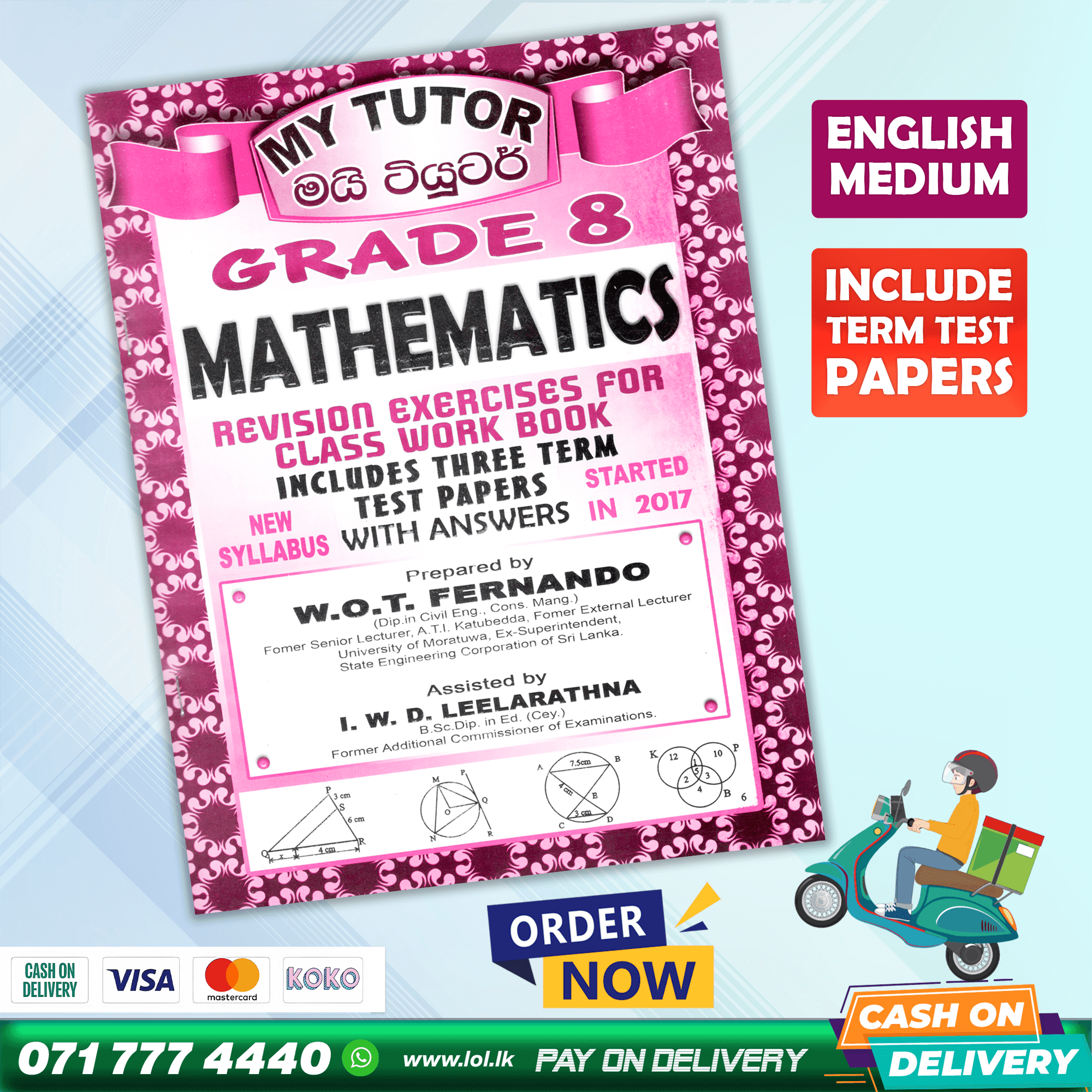 Buy Grade 08 Maths workbook with term test papers. This book provides classified questions and answers organized by lesson, covering all lessons in the Grade 8 Maths subject.