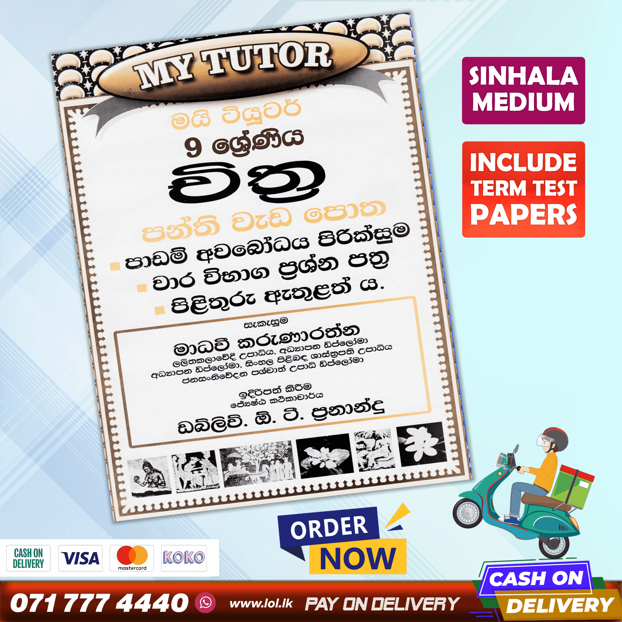 Buy My Tutor Grade 09 Art revision exercises class workbook with term test papers including answers. 09 ශ්රේණිය චිත්ර පන්ති වැඩ පොත. පාඩම් අවබෝධ පිරික්සුම, වාර විභාග ප්රශ්න පත්ර, පිළිතුරු පත්ර ඇතුළත් ය.