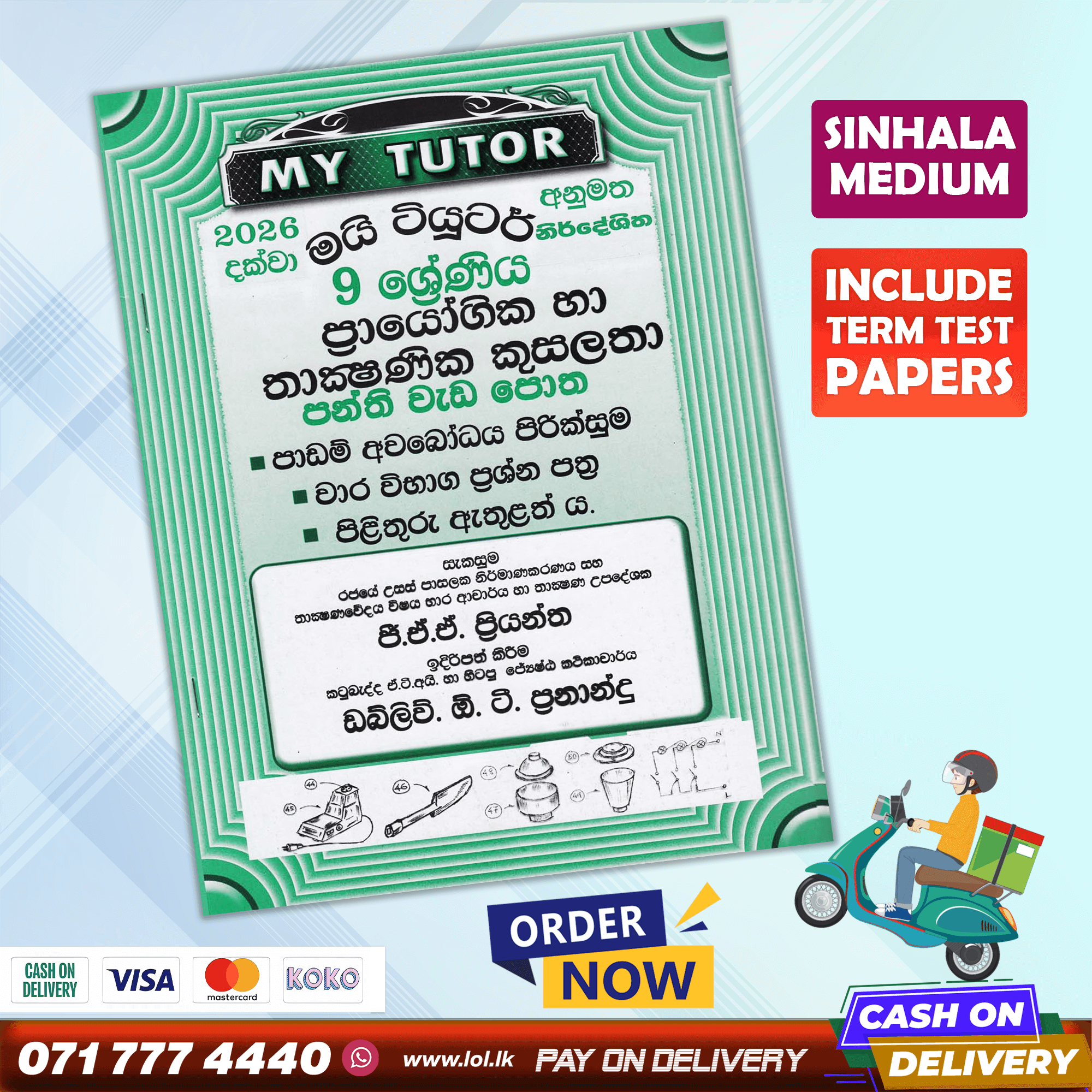 Buy My Tutor Grade 09 PTS revision exercises class workbook with term test papers including answers. 09 ශ්රේණිය ප්රායෝගික හා තාක්ෂණික කුසලතා පන්ති වැඩ පොත. පාඩම් අවබෝධ පිරික්සුම, වාර විභාග ප්රශ්න පත්ර, පිළිතුරු පත්ර ඇතුළත් ය.