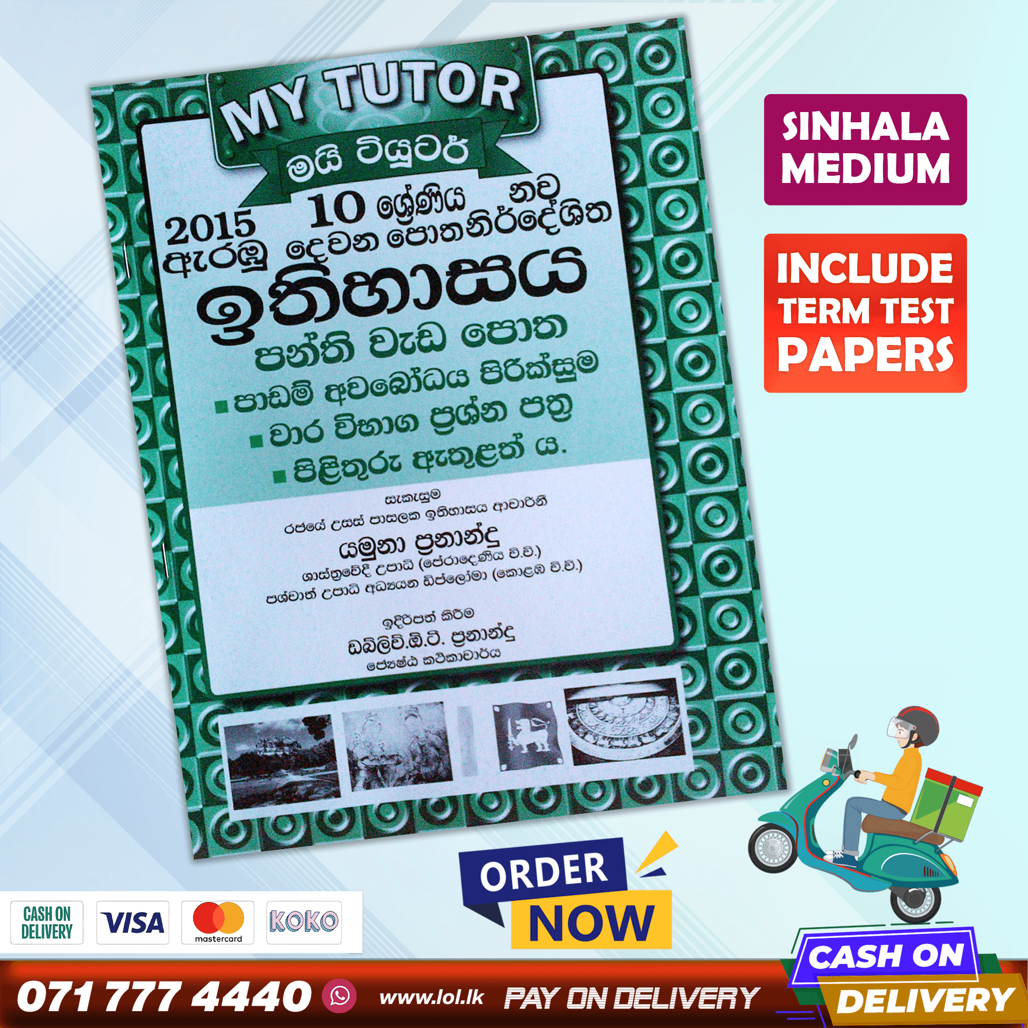 Buy My Tutor Grade 10 History revision exercises class workbook with term test papers including answers. 10 ශ්රේණිය ඉතිහාසය පන්ති වැඩ පොත. පාඩම් අවබෝධ පිරික්සුම, වාර විභාග ප්රශ්න පත්ර, පිළිතුරු පත්ර ඇතුළත් ය.