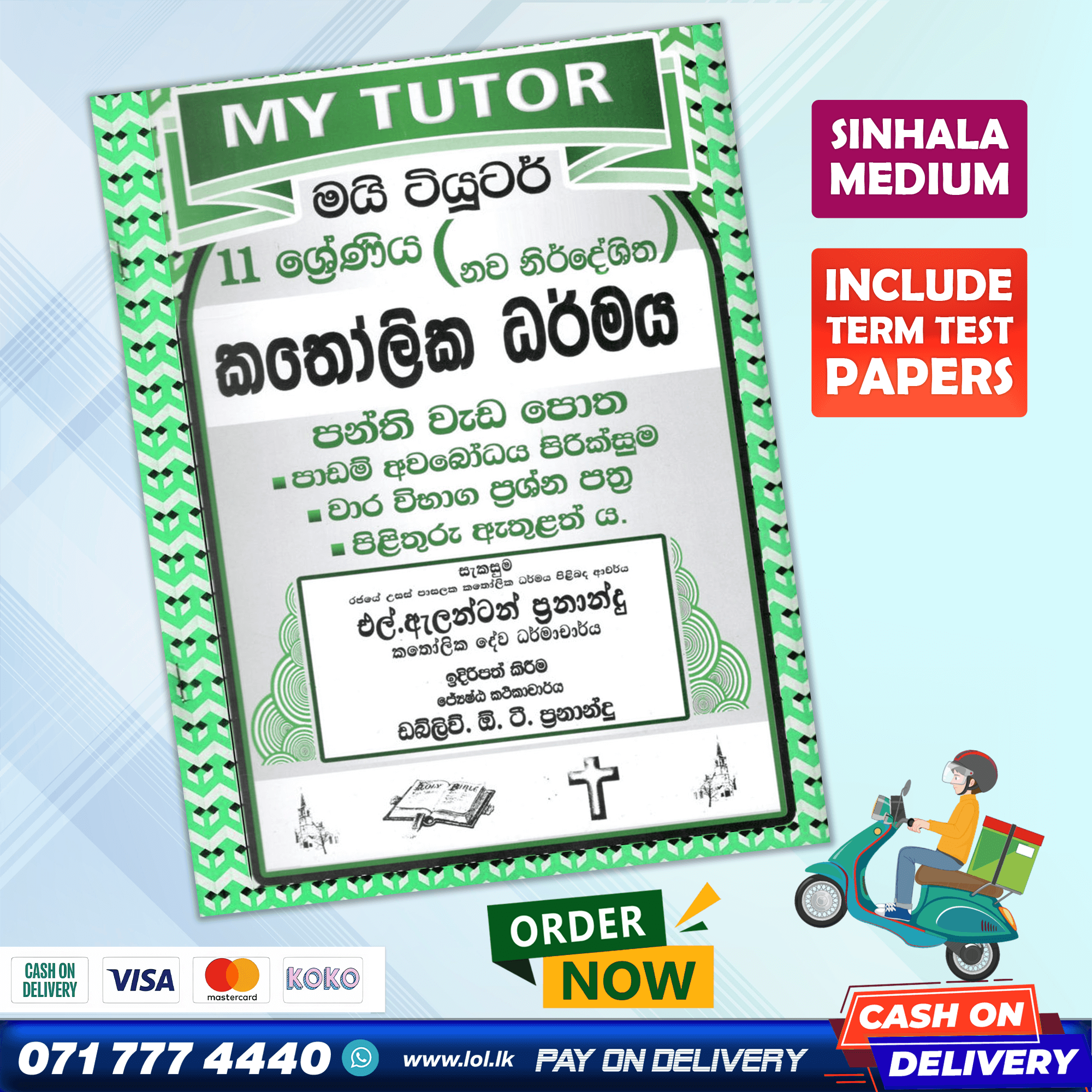 Buy My Tutor Grade 11 Catholicism revision exercises class workbook with term test papers including answers. 11 ශ්රේණිය කතෝලික ධර්මය පන්ති වැඩ පොත. පාඩම් අවබෝධ පිරික්සුම, වාර විභාග ප්රශ්න පත්ර, පිළිතුරු පත්ර ඇතුළත් ය.