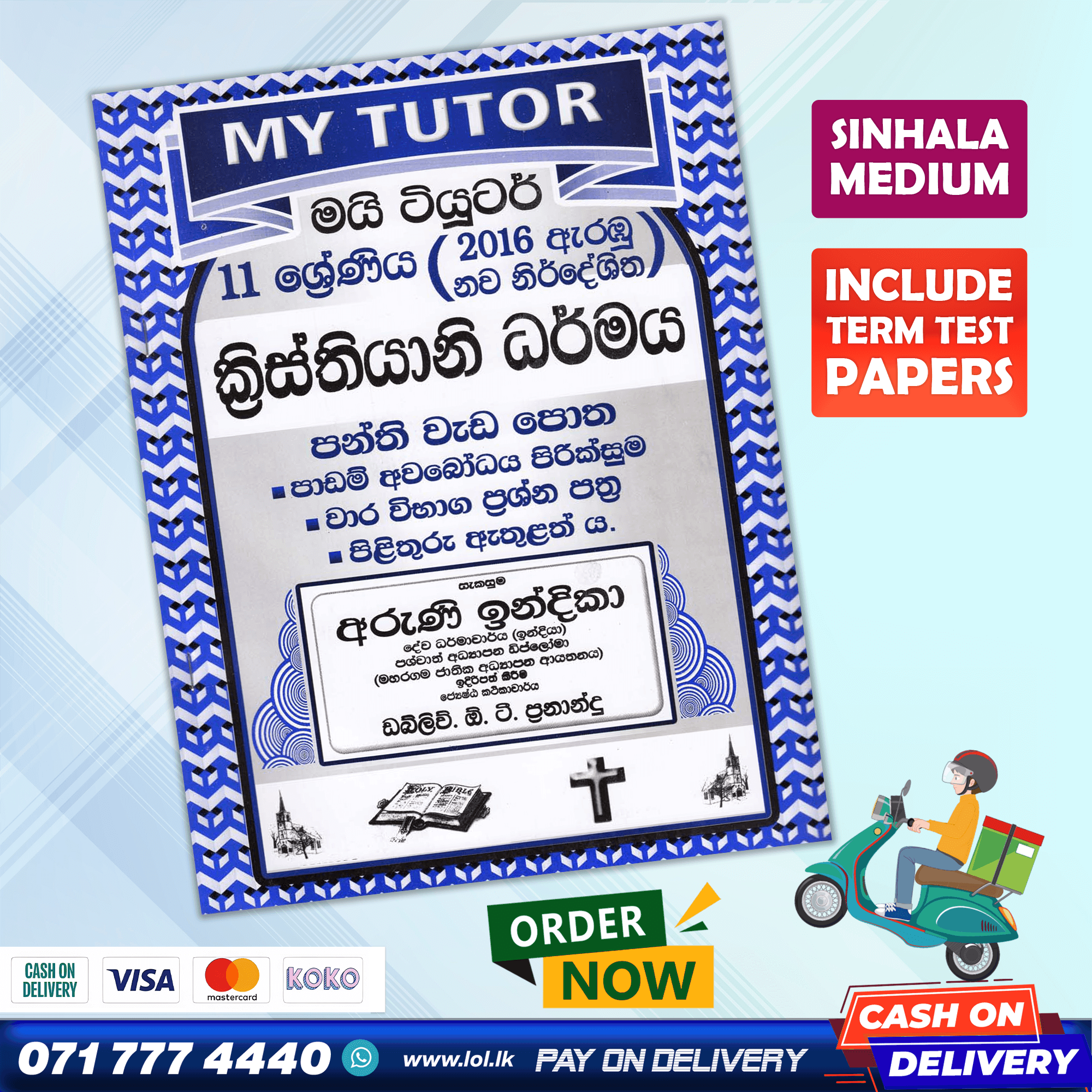 Buy My Tutor Grade 11 Christianity revision exercises class workbook with term test papers including answers. 11 ශ්රේණිය ක්රිස්තියානි ධර්මය පන්ති වැඩ පොත. පාඩම් අවබෝධ පිරික්සුම, වාර විභාග ප්රශ්න පත්ර, පිළිතුරු පත්ර ඇතුළත් ය.