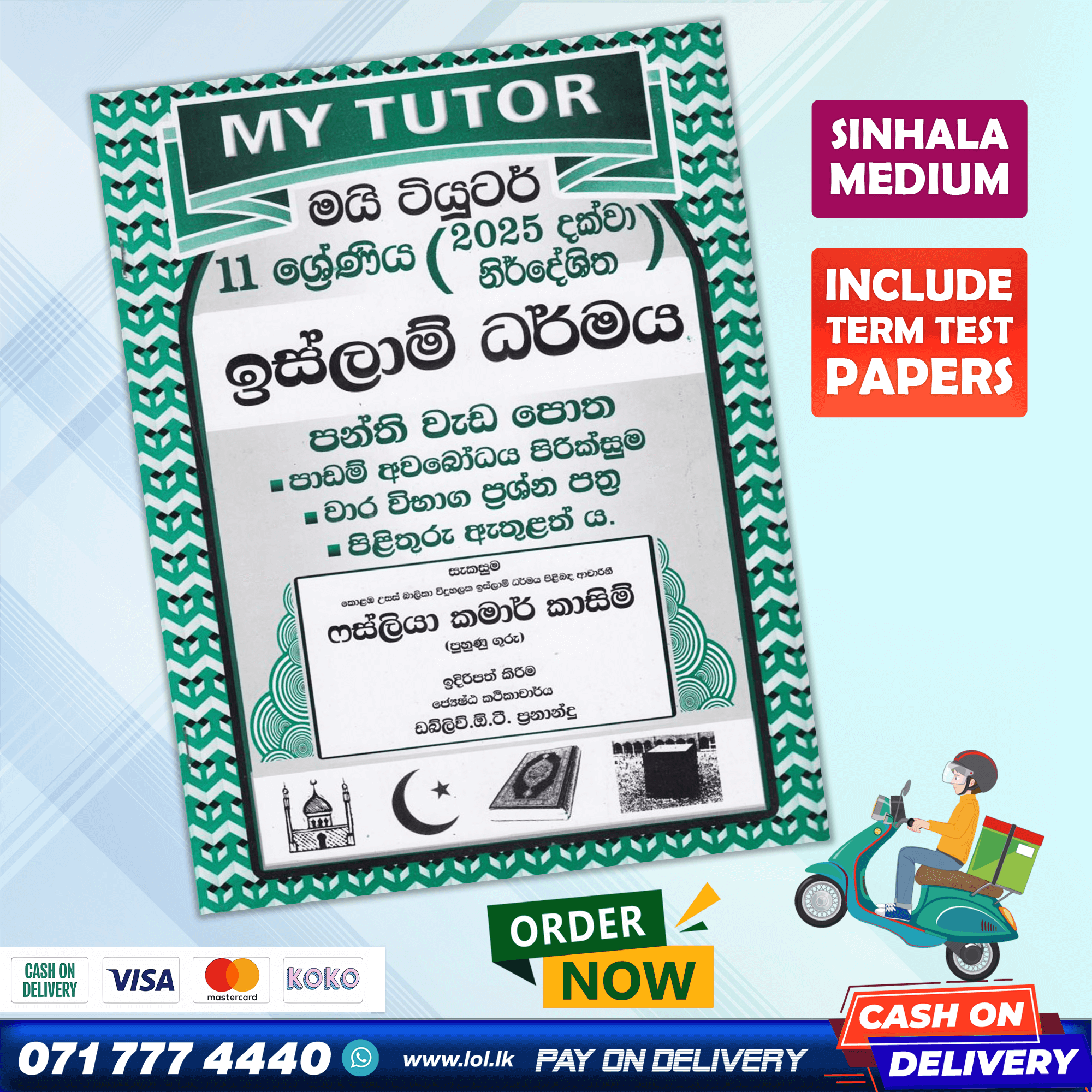 Buy My Tutor Grade 11 Islam revision exercises class workbook with term test papers including answers. 11 ශ්රේණිය ඉස්ලාම් ධර්මය පන්ති වැඩ පොත. පාඩම් අවබෝධ පිරික්සුම, වාර විභාග ප්රශ්න පත්ර, පිළිතුරු පත්ර ඇතුළත් ය.