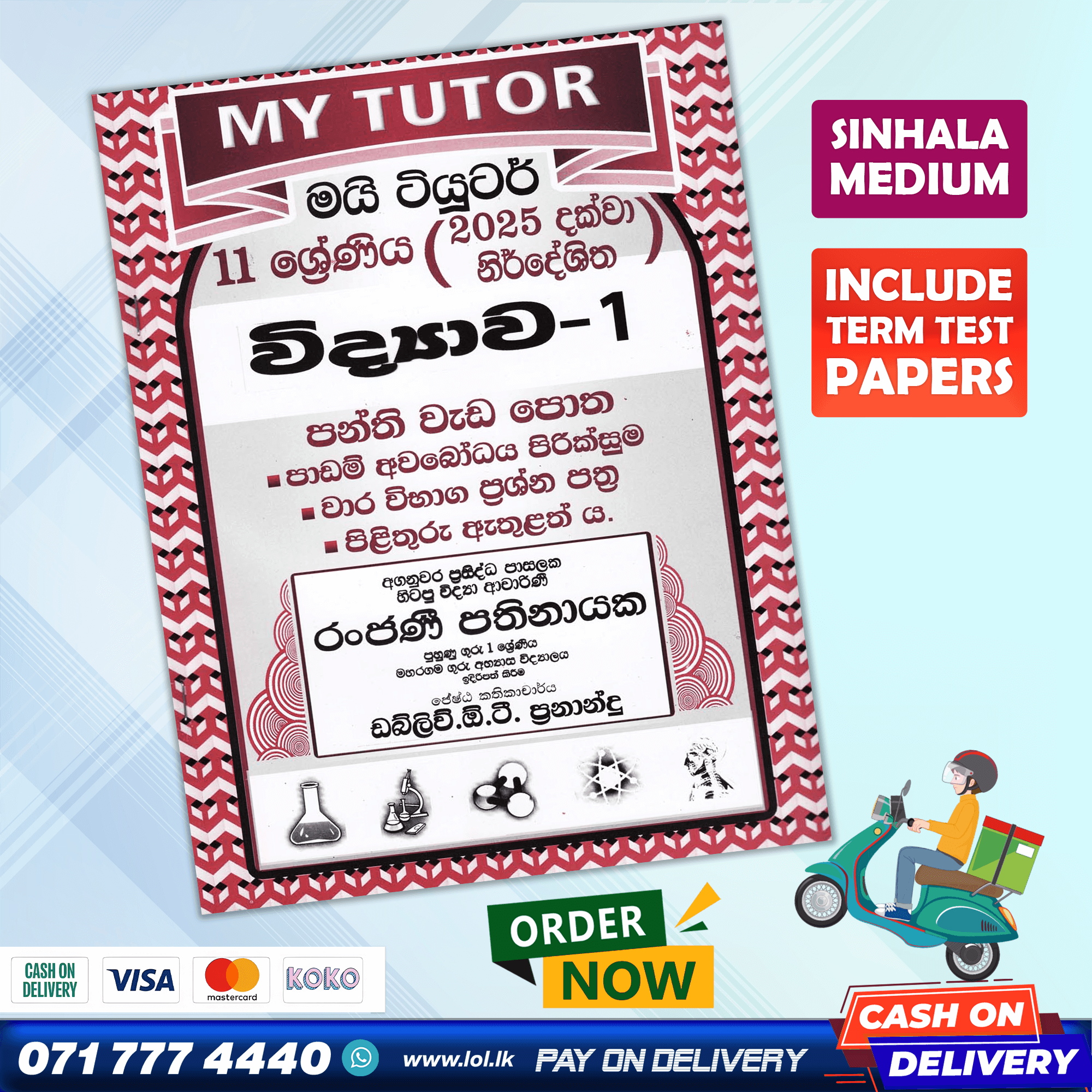 Buy My Tutor Grade 11 Science revision exercises class workbook with term test papers including answers. 11 ශ්‍රේණිය විද්‍යාව පන්ති වැඩ පොත. පාඩම් අවබෝධ පිරික්සුම, වාර විභාග ප්‍රශ්න පත්‍ර, පිළිතුරු පත්‍ර ඇතුළත් ය.