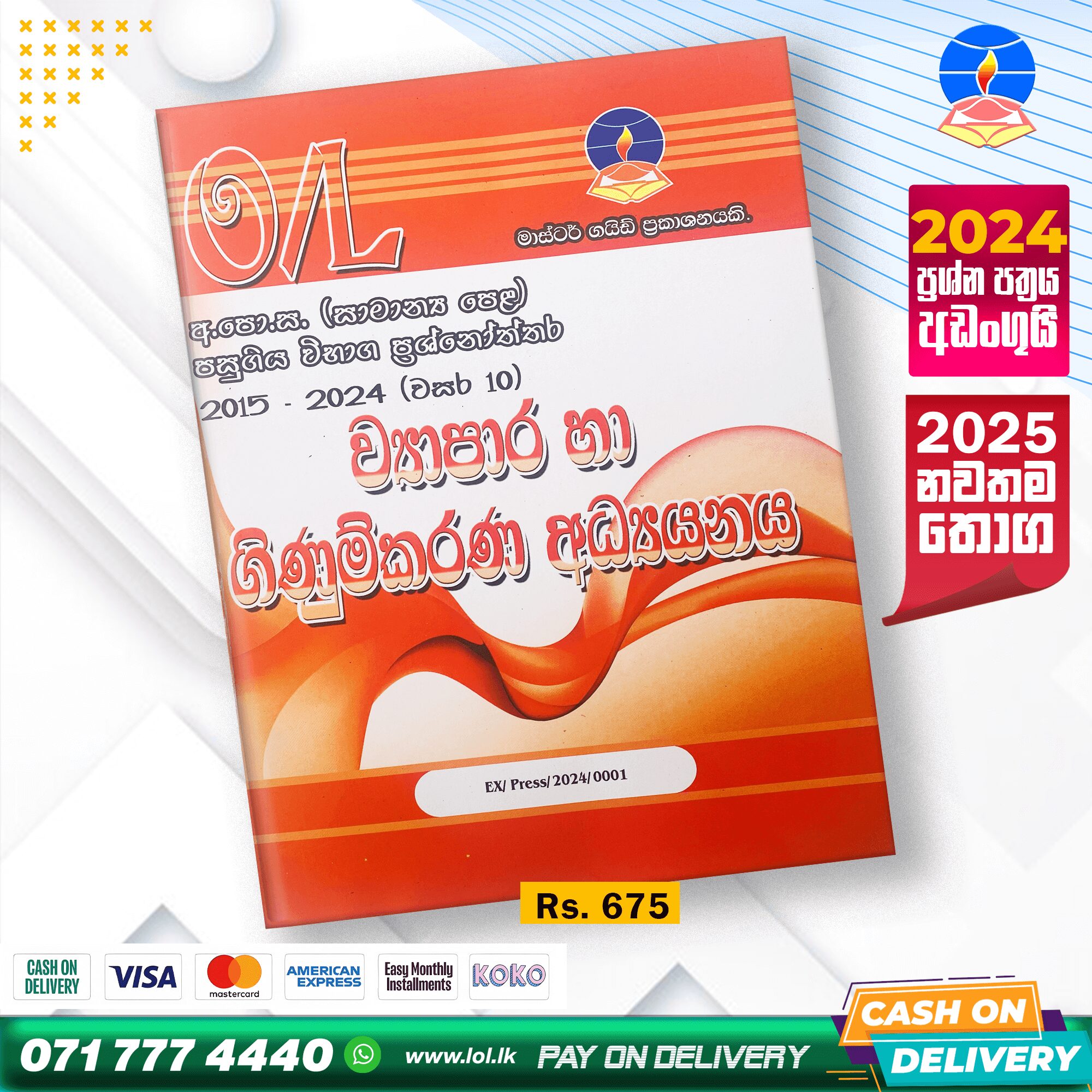 Master Guide O/L Business & Accounting Studies Past Paper Book 2025. Includes Past Papers and Answers for the last 10 years’ exams from 2015 to 2024
