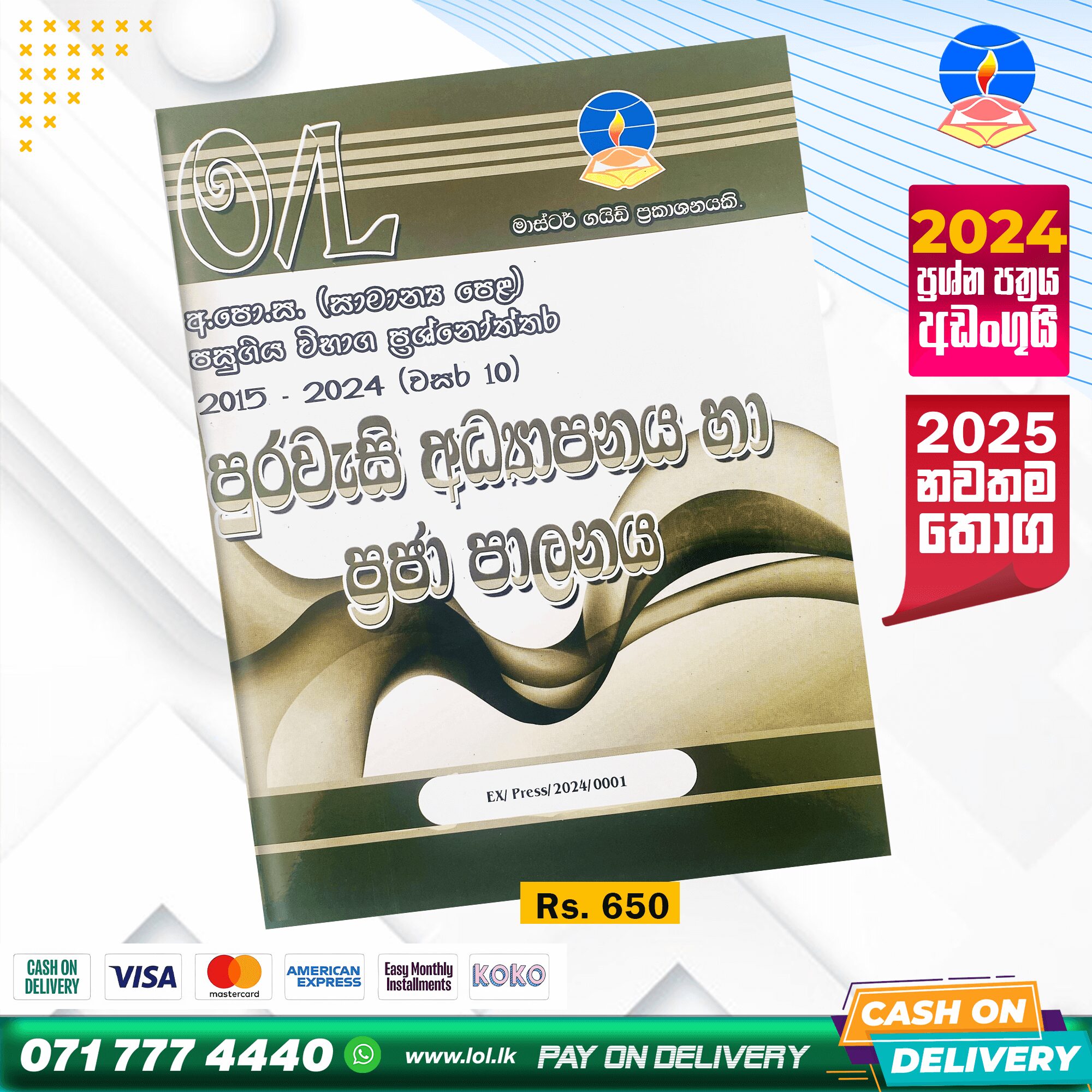 - This item: O/L Civic Education Past Paper Book 2025 | Master Guide(රු 650.00)