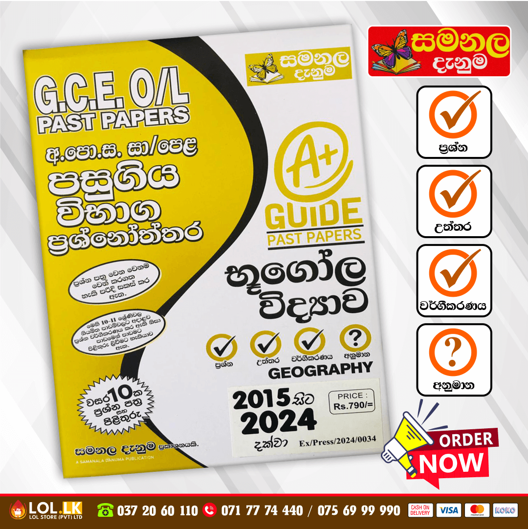 Buy Samanala Danuma O/L Geography  Past Paper Book online. It Includes Question papers and Answer sheets for the last 10 years’ exams from 2015 to 2024