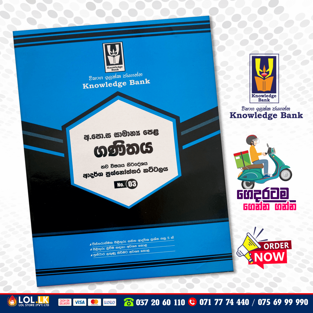 Buy Knowledge Bank O/L Mathematics Model Paper Book 03 including answers. අ.පෙ.ස. (සා.පෙළ) ගණිතය නව විෂය නිර්දේශිත ආදර්ශ ප්රශ්න පත්ර කට්ටලය.