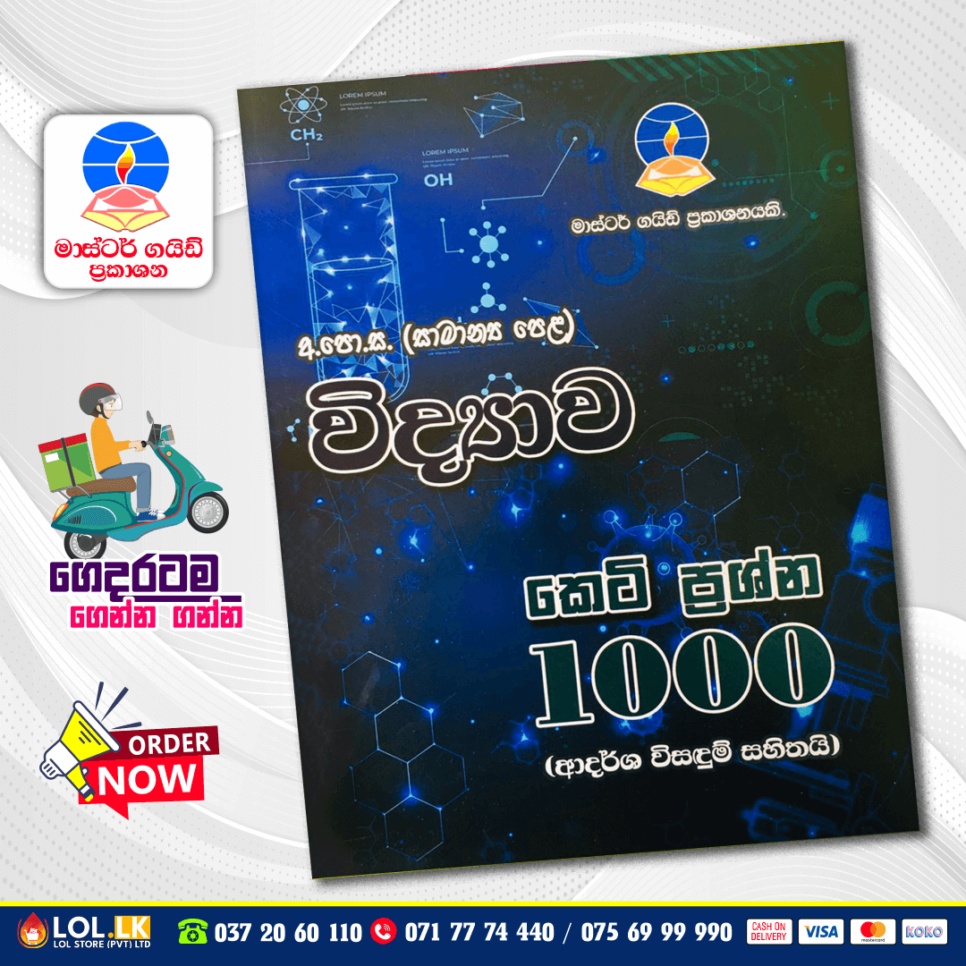 මාස්ටර් ගයිඩ් ප්‍රකාශන මගින් ප්‍රකාශිත ඉංග්‍රීසි මාධ්‍ය අ.පො.ස සා/පෙළ විද්‍යාව කෙටි ප්‍රශ්න 1000ක් සහ පිළිතුරු පොත මිලදී ගන්න.