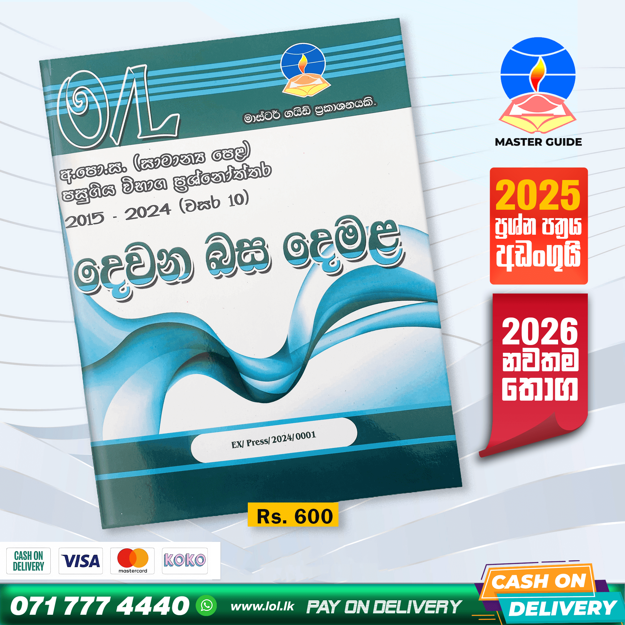 Master Guide O/L Second Language Tamil Past Paper Book 2025. Includes Past Papers and Answers for the last 10 years’ exams from 2015 to 2024