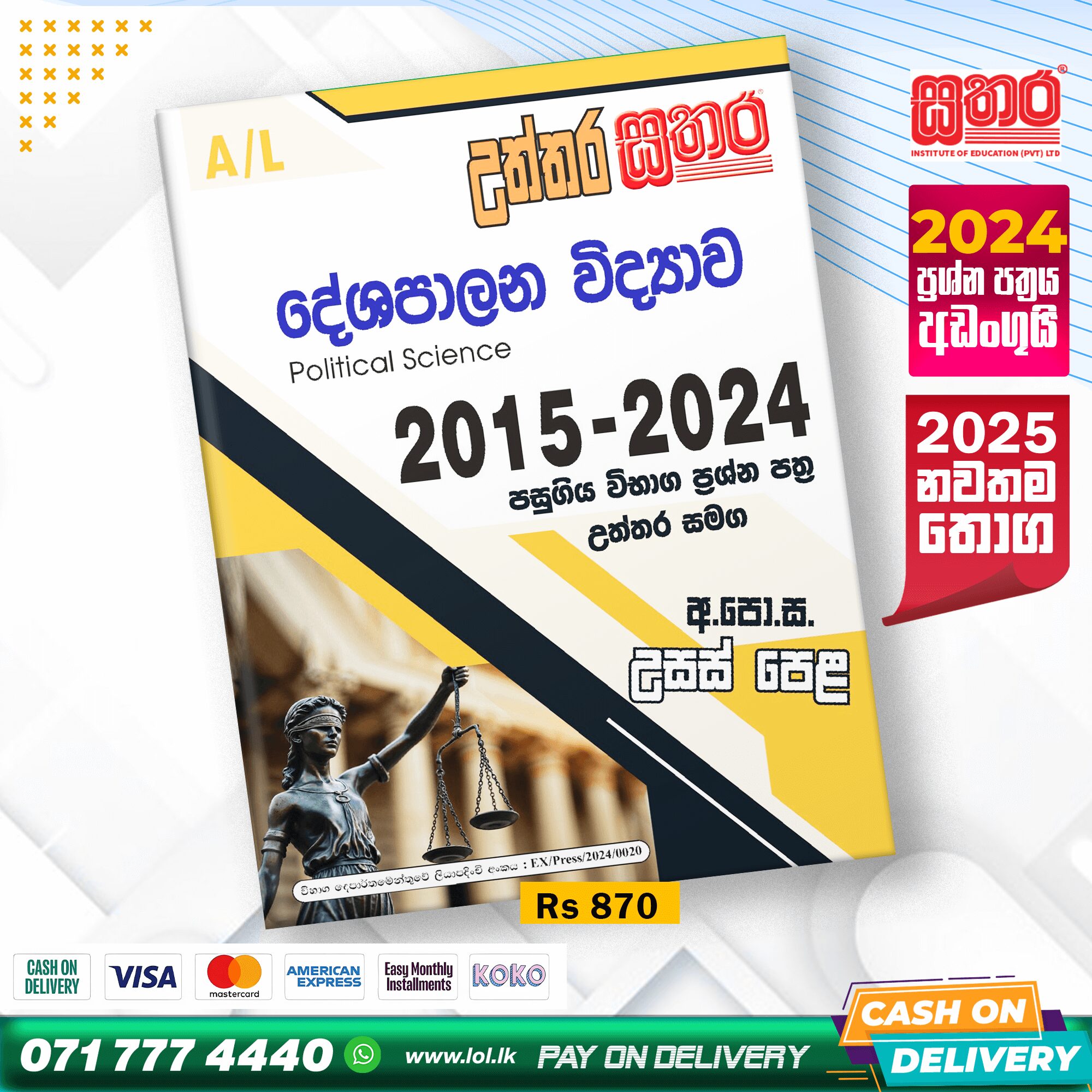 Buy Uththara Sathara A/L Political Science Past Paper Book online. It Includes Past Papers and Answers for the last 10 years of G.C.E. A/L Political Science Exams from 2015 to 2024