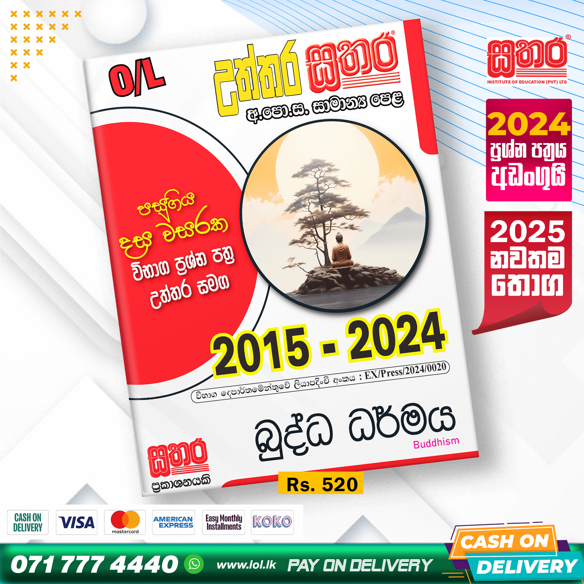The new Sathara Publishers GCE O/L Buddhism book with past papers from 2015 – 2024 and correct answers. Available from November 2025. Order online now. Island-wide Cash on Delivery (COD) with the lowest delivery fees. We have papers for all subjects.