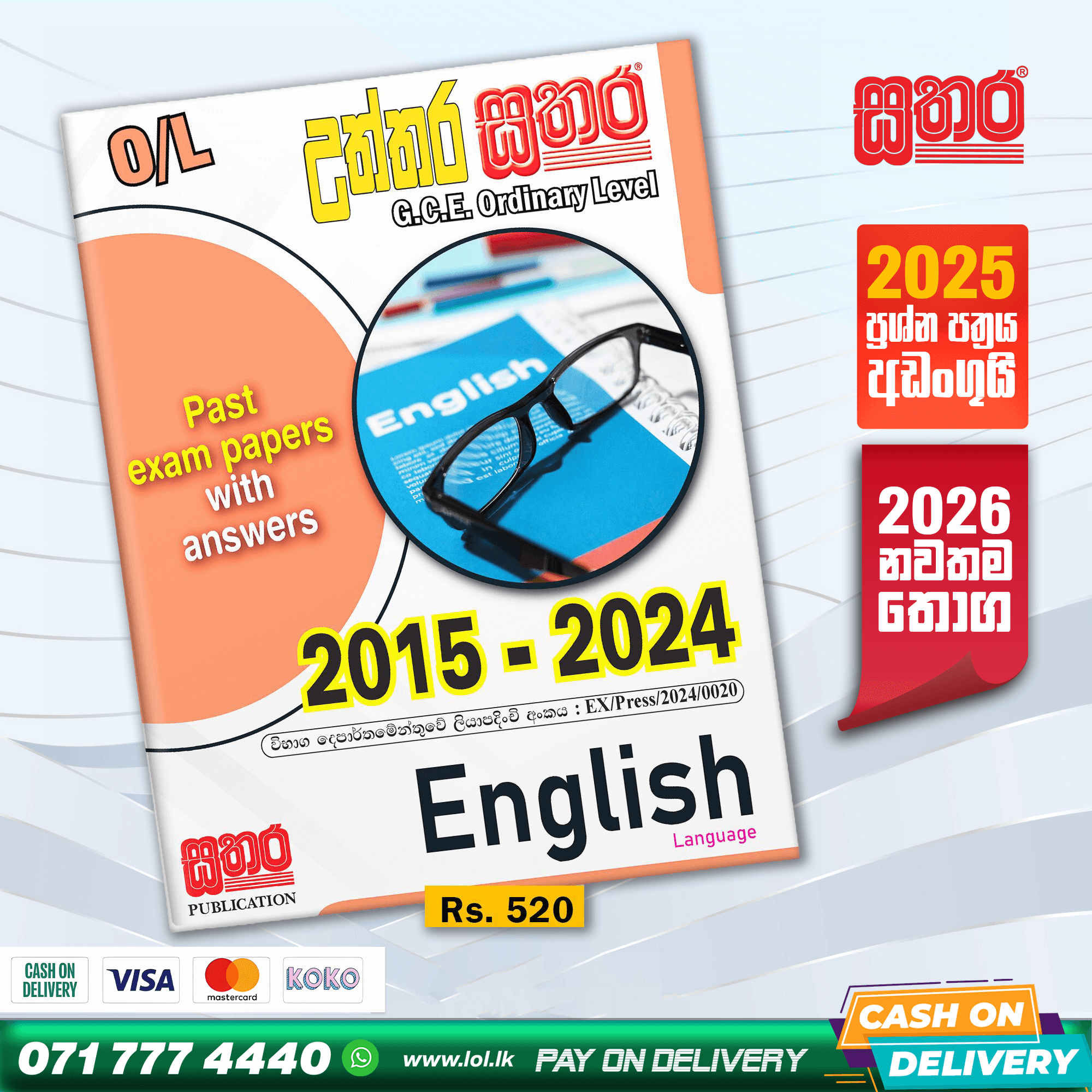 The new Sathara Publishers GCE O/L English book with past papers from 2015 – 2024 and correct answers. Available from November 2025. Order online now. Island-wide Cash on Delivery (COD) with the lowest delivery fees. We have papers for all subjects.