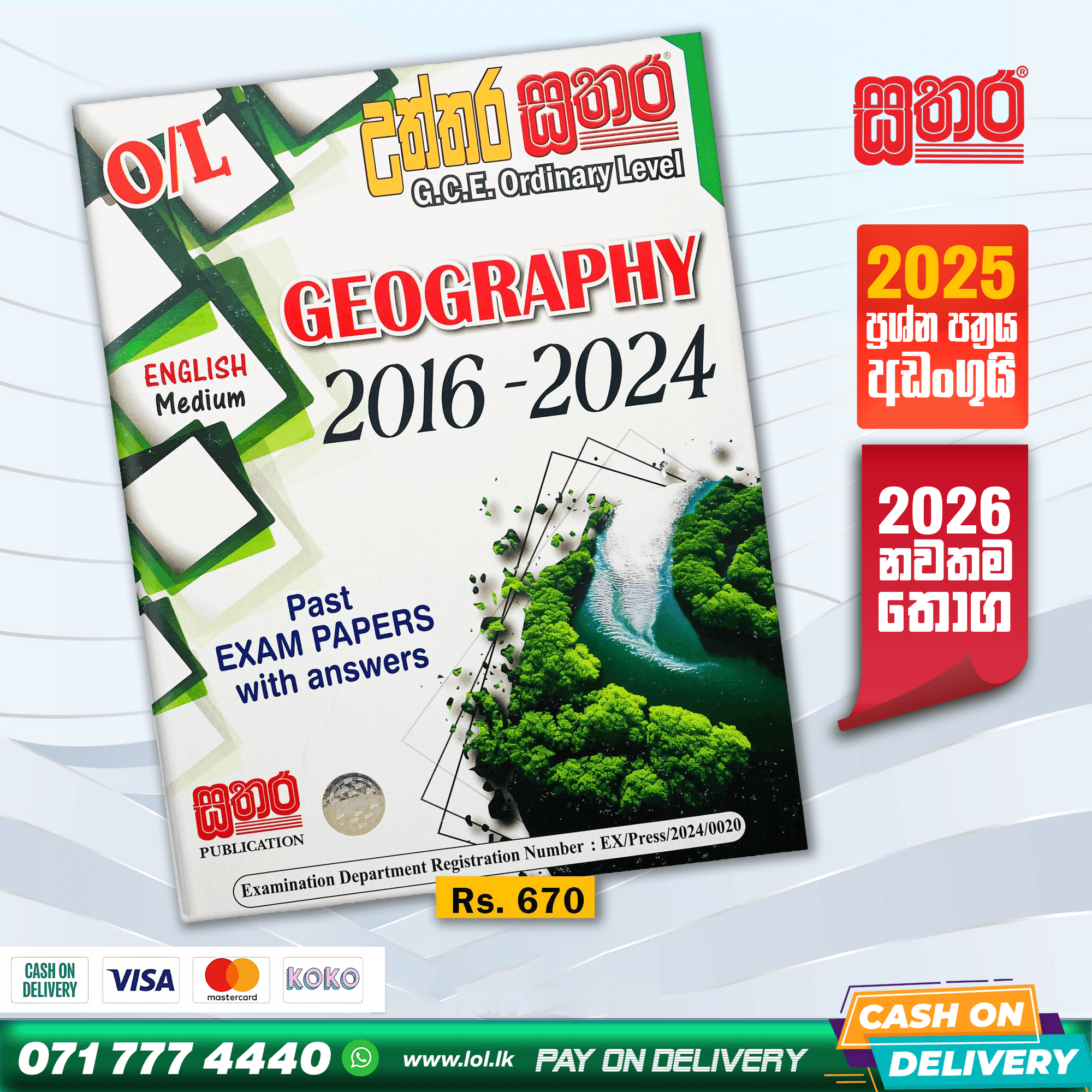 The new Sathara Publishers GCE O/L Geography(English Medium) book with past papers from 2016 – 2024 and correct answers. Available from November 2025. Order online now. Island-wide Cash on Delivery (COD) with the lowest delivery fees. We have papers for all subjects.