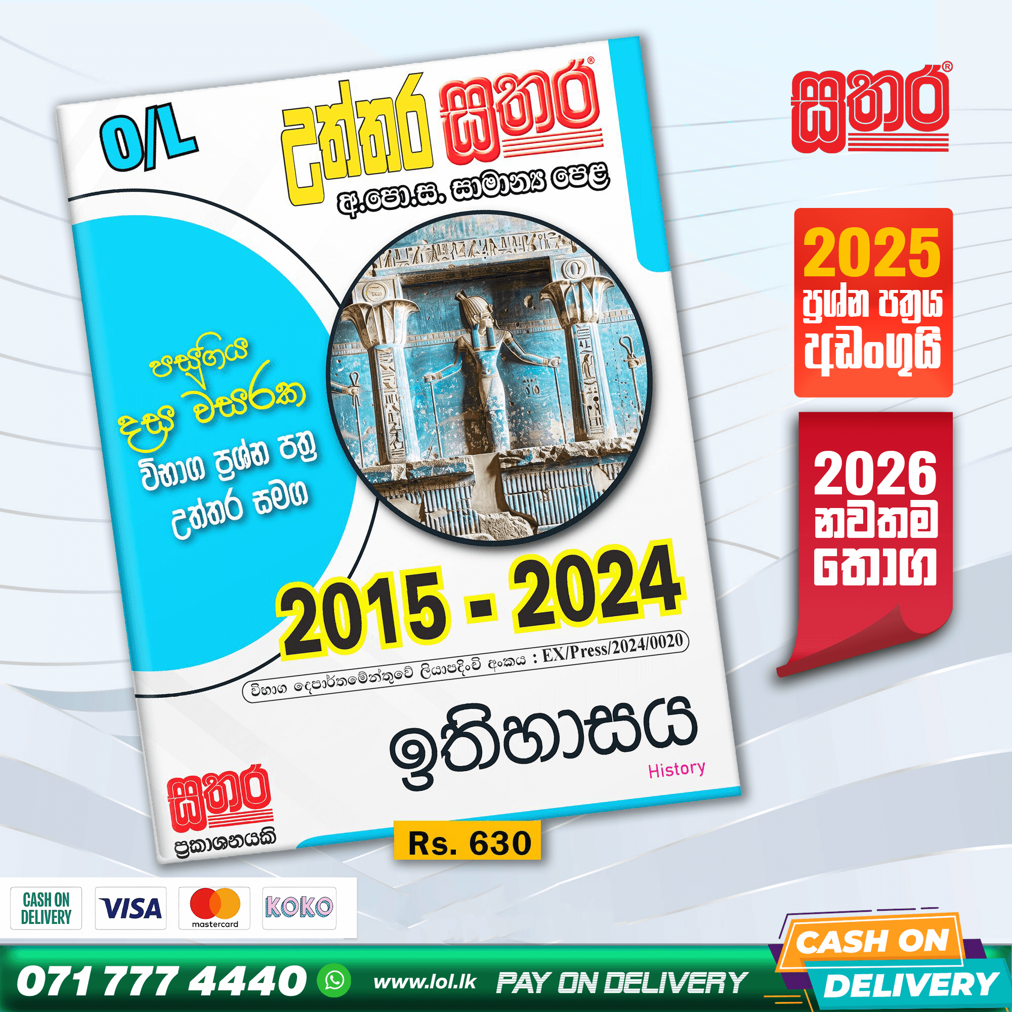 The new Sathara Publishers GCE O/L History book with past papers from 2015 – 2024 and correct answers. Available from November 2025. Order online now. Island-wide Cash on Delivery (COD) with the lowest delivery fees. We have papers for all subjects.