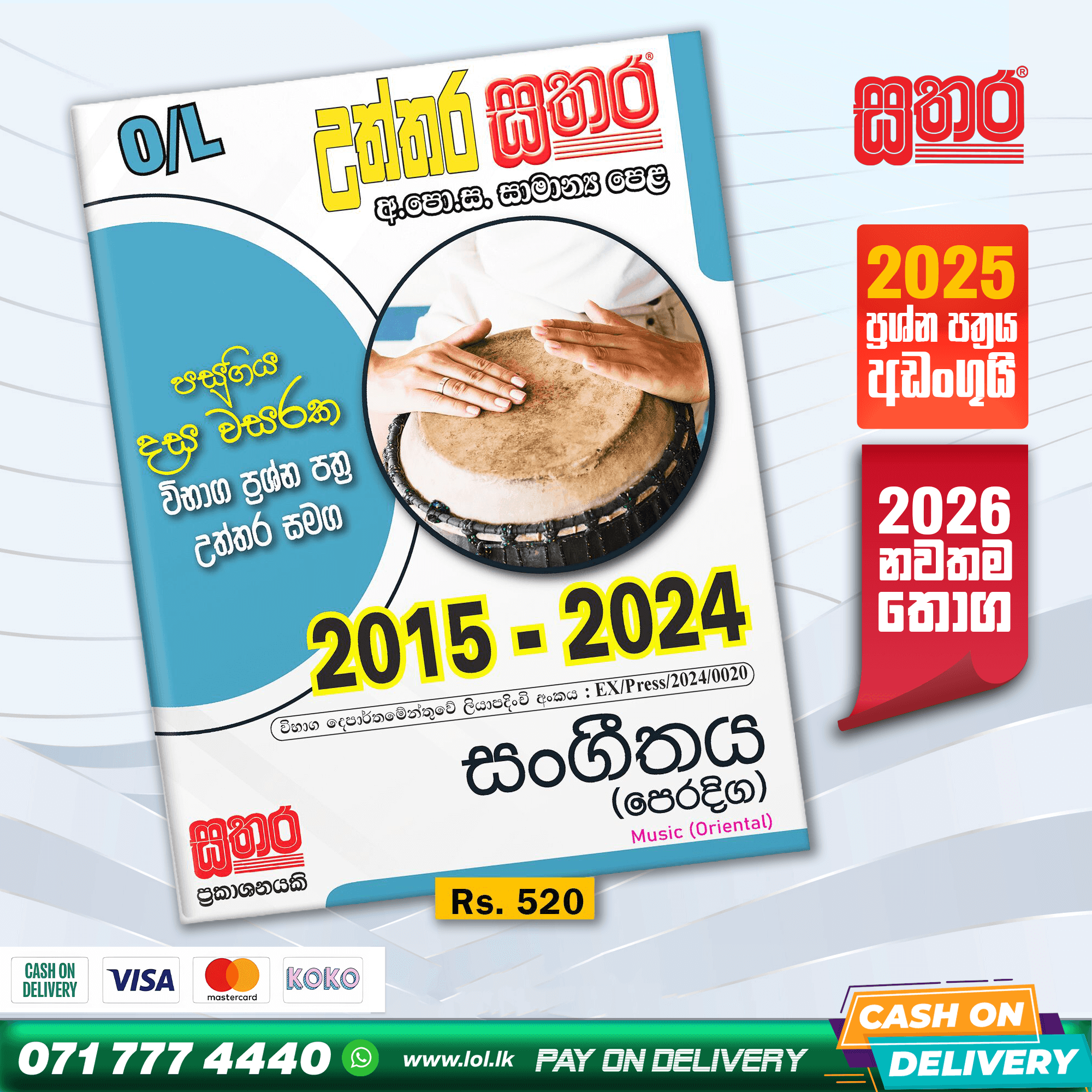 The new Sathara Publishers GCE O/L Music book with past papers from 2015 – 2024 and correct answers. Available from November 2025. Order online now. Island-wide Cash on Delivery (COD) with the lowest delivery fees. We have papers for all subjects.