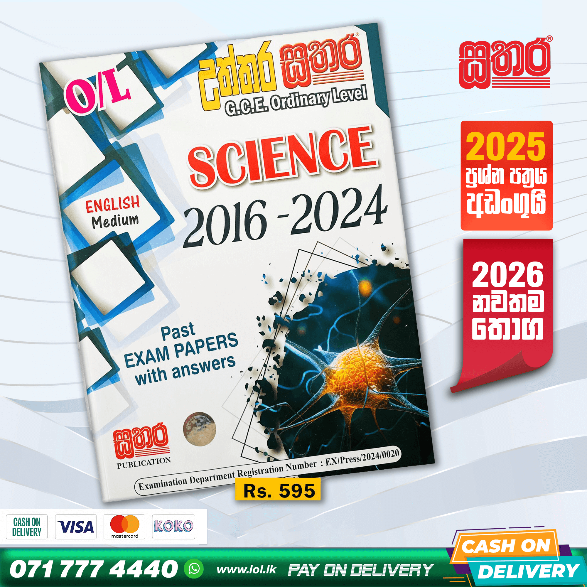 The new Sathara Publishers GCE O/L Science(English Medium) book with past papers from 2016 – 2024 and correct answers. Available from November 2025. Order online now. Island-wide Cash on Delivery (COD) with the lowest delivery fees. We have papers for all subjects.