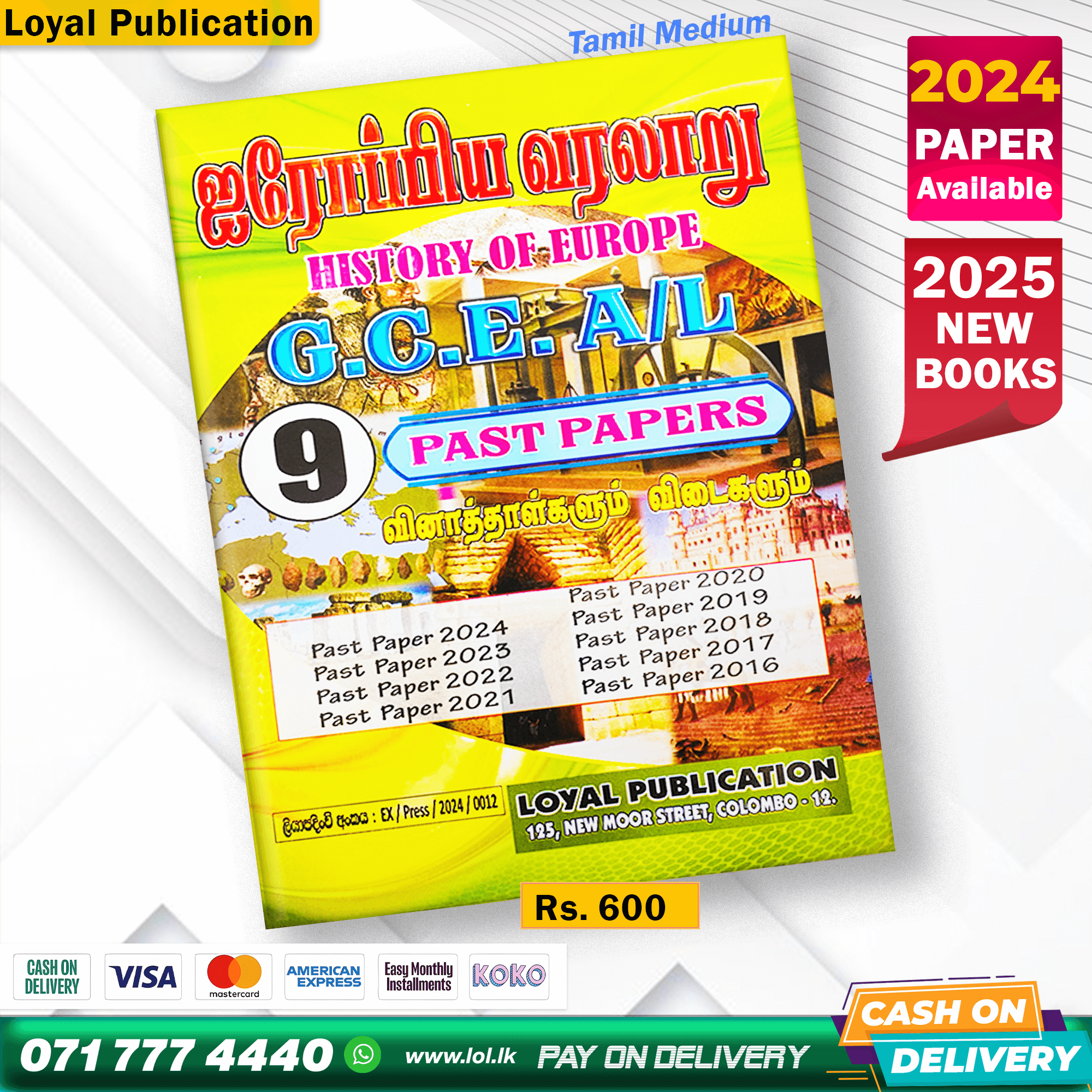 A1: The Loyal Publication A/L History of Europe Past Paper Book is a comprehensive study guide for G.C.E. Advanced Level students, containing a collection of past exam papers for the History of Europe subject in Tamil medium.