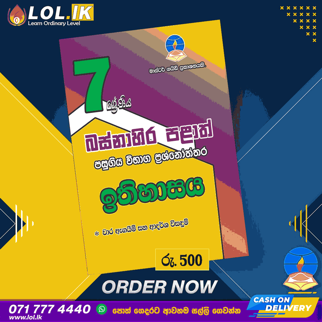 Tags: 07 ශ්රේණිය බස්නාහිර පළාත් ඉංග්රිසි, 7 History Past Papers, 7 ශ්රේණිය – ඉතිහාසය බස්නාහිර පළාත් පසුගිය විභාග ප්රශ්නෝත්තර, Grade 07 History Term Test Papers Book