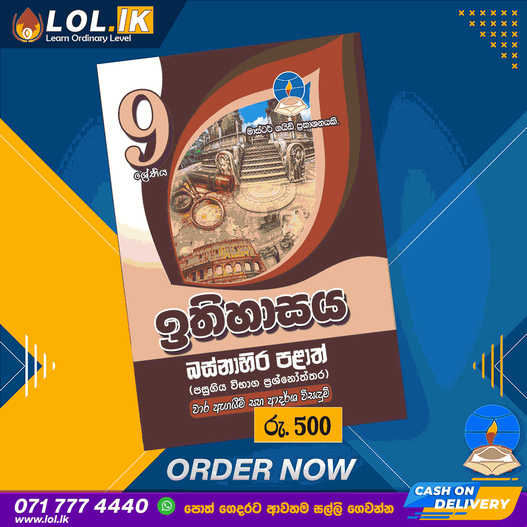 Tags: 09 ශ්රේණිය බස්නාහිර පළාත් ඉංග්රිසි, 9 History Past Papers, 9 ශ්රේණිය – ඉතිහාසය බස්නාහිර පළාත් පසුගිය විභාග ප්රශ්නෝත්තර, Grade 09 History Term Test Papers Book